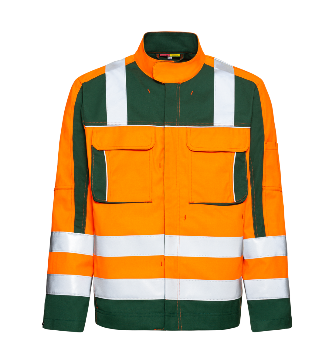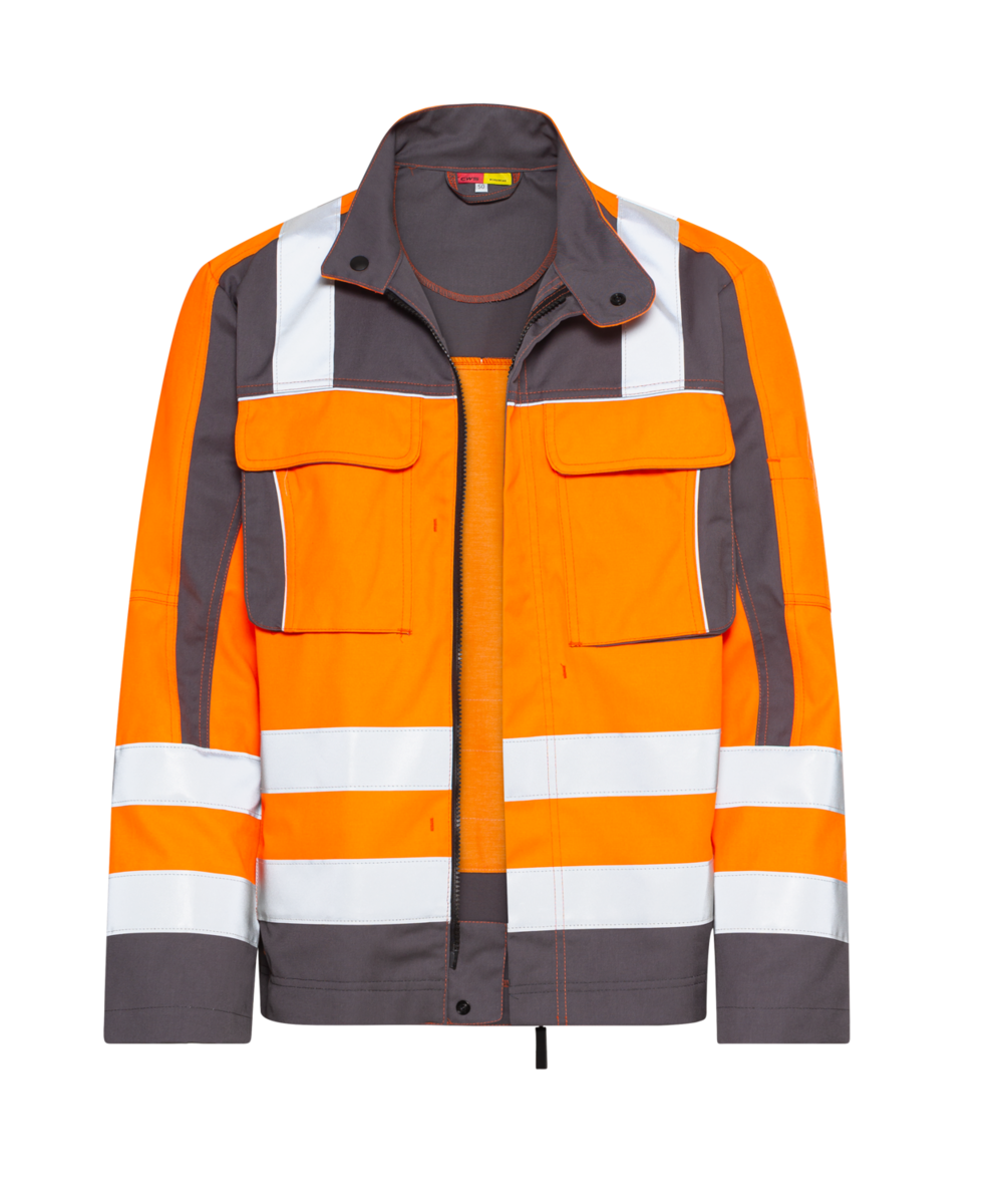 Oblečení s vysokou viditelností je vyrobeno z 50 % z polyesteru a 50 % z bavlny z programu Fairtrade - body navíc za udržitelnost. Dvě náprsní kapsy se skrytým knoflíkem a uzavíratelnou vnitřní náprsní kapsou a dvě boční kapsy na zip nabízejí dostatek prostoru pro nářadí a věci denní potřeby. Prodloužená záda chrání před průvanem a stiskací cvočky na manžetách umožňují snadné nastavení.