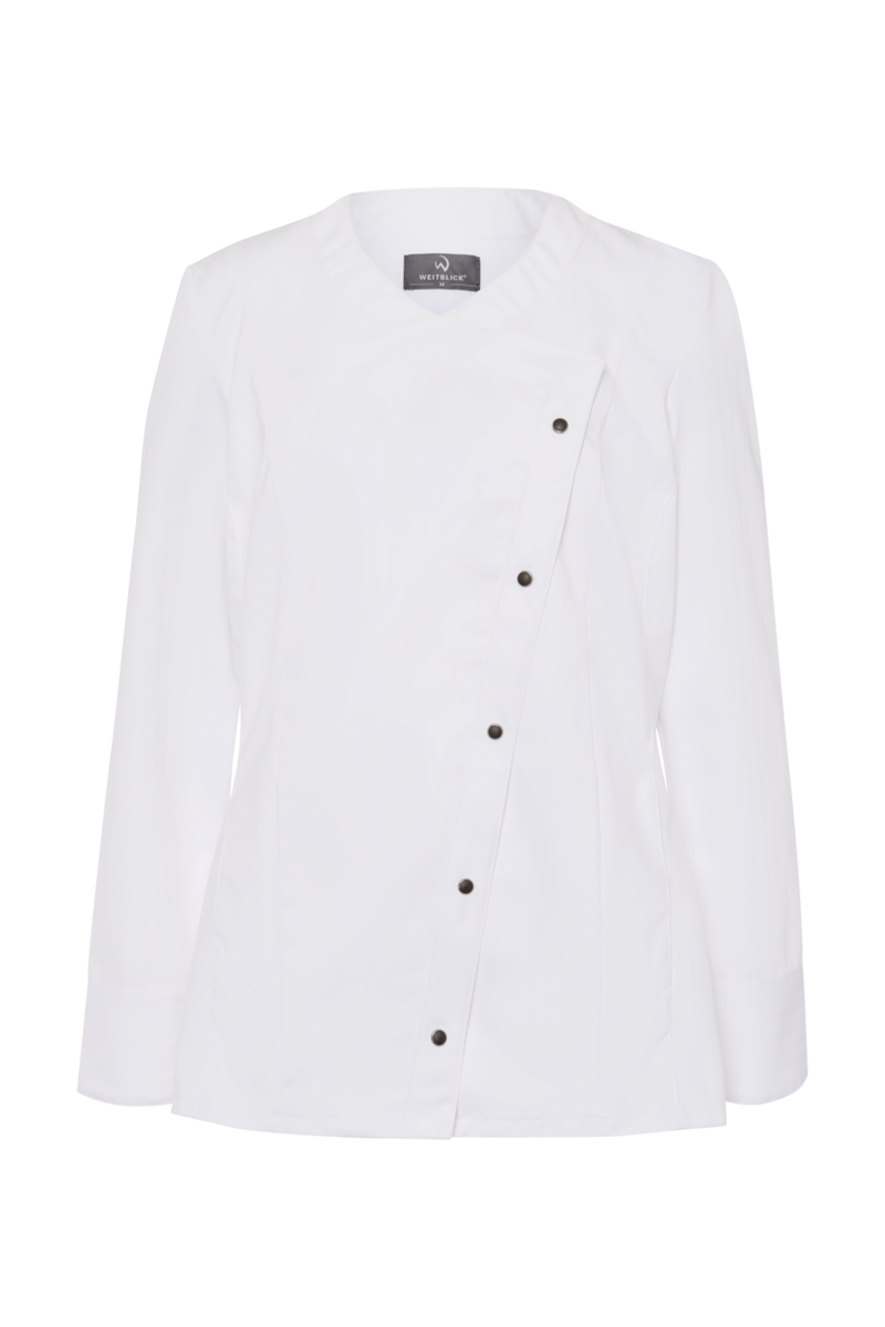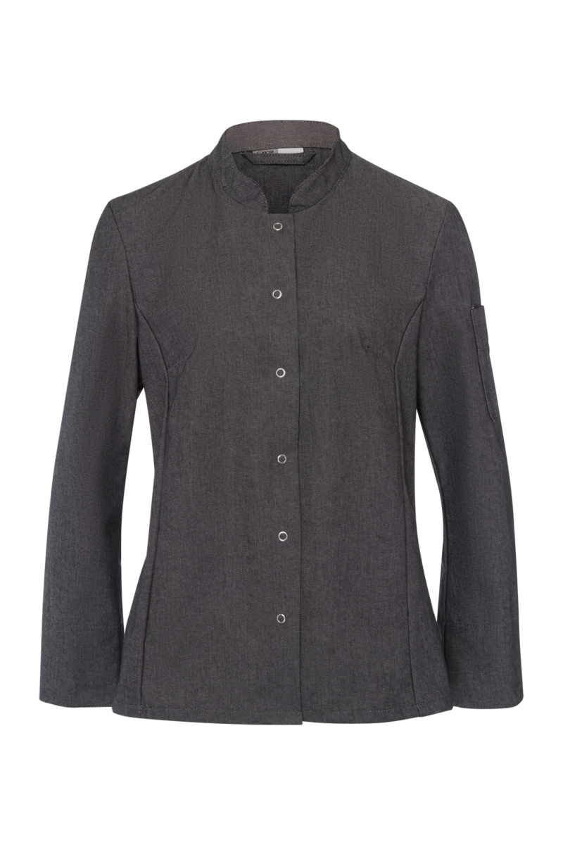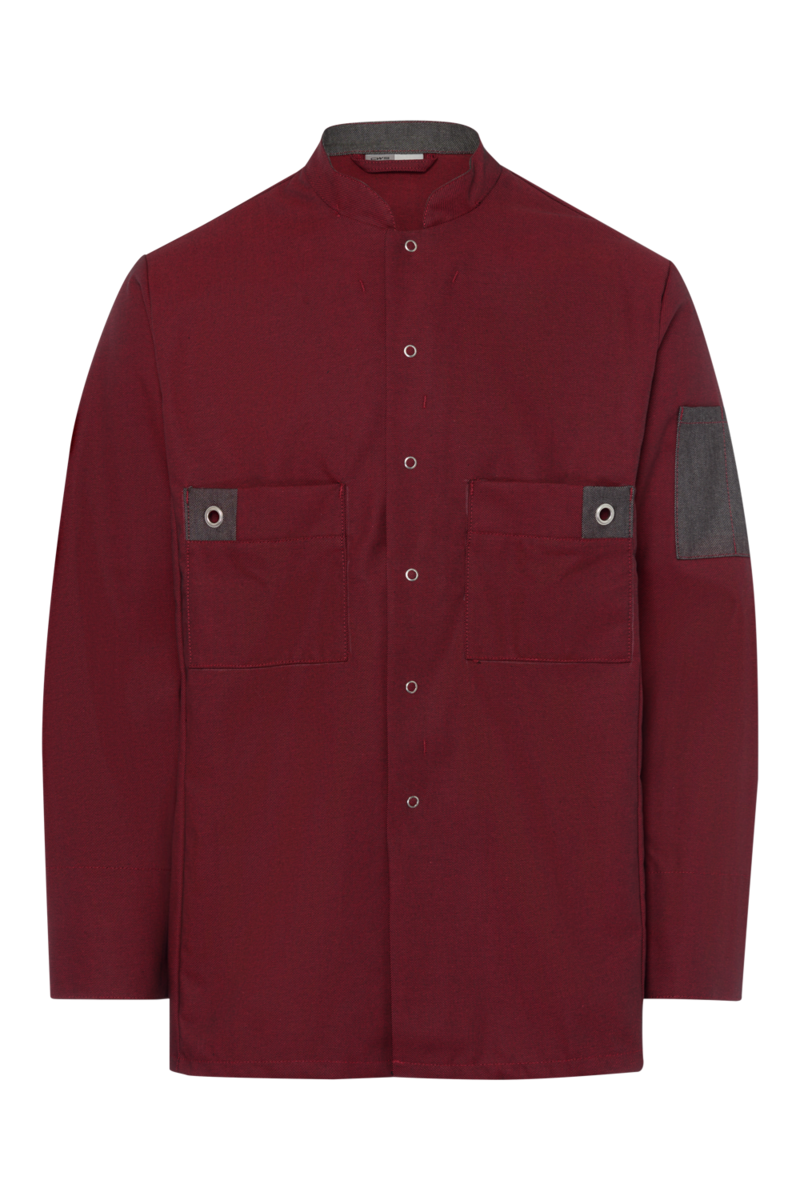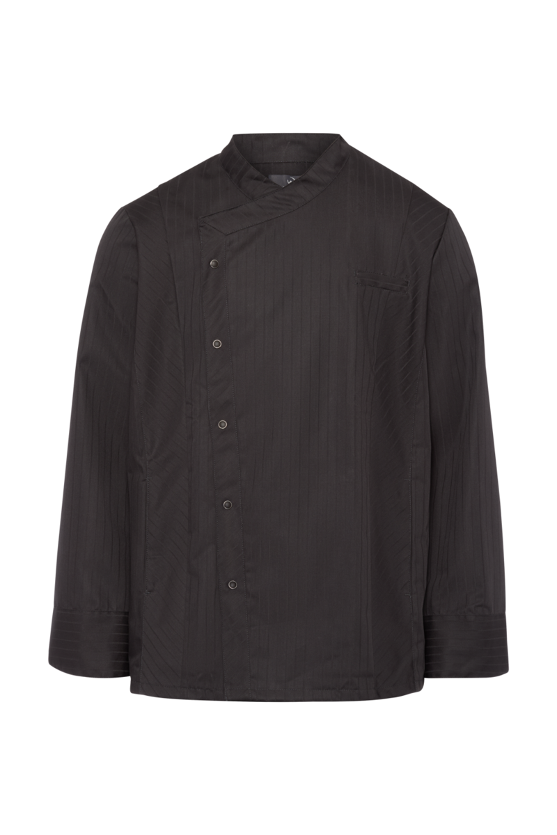 The bistro jacket for men from the "Asia Line" collection convinces with its high-quality workmanship. The medium-weight cotton/polyester blend with a soft feel ensures a comfortable fit. Practical details additionally support the wearing comfort: the back part is underlaid with mesh lining, which improves air circulation and is especially beneficial in kitchens with a humid and hot climate. Small ventilation openings are also incorporated into the dividing seams in the back. The addition of cotton makes the chef's jacket pleasant to wear against the skin. The "Asia Line" chef's jacket for men looks very elegant with its matt-glossy stripes and the deep, dark blue colour. The skin-friendly blended fabric scores particularly well in practice with its high colour and shape retention and durability. This men's bistro jacket has an asymmetrical cut; it closes in a single row with easy-to-open press studs made of stainless steel. The bistro jacket has two side walking slits, two welt pockets and one breast welt pocket.