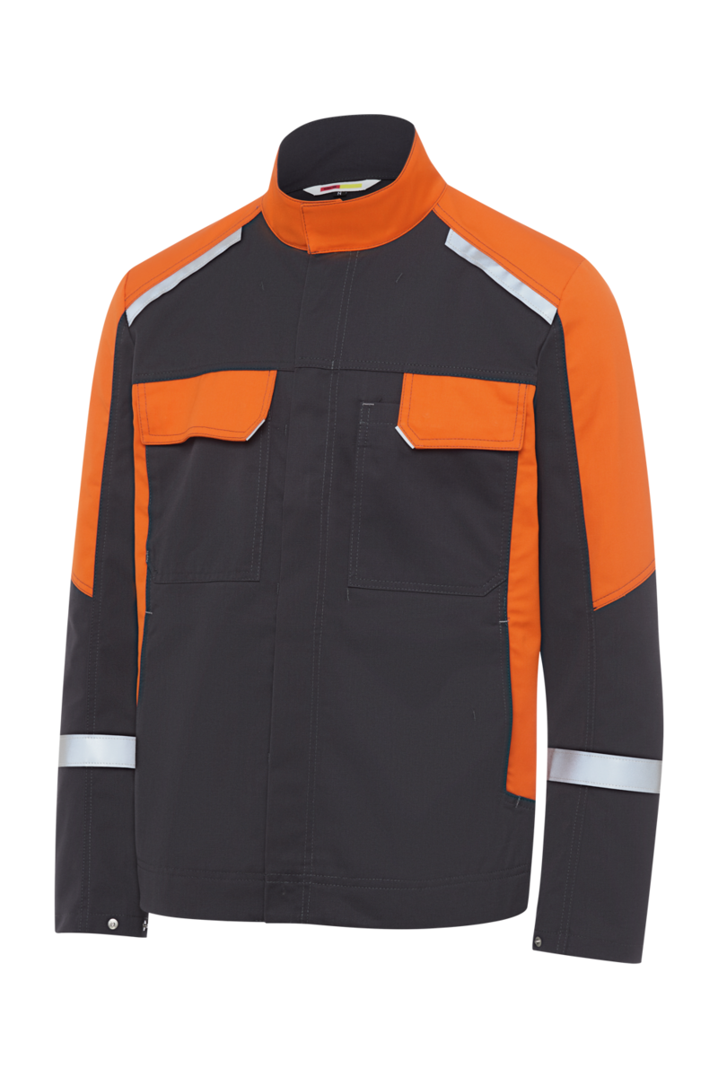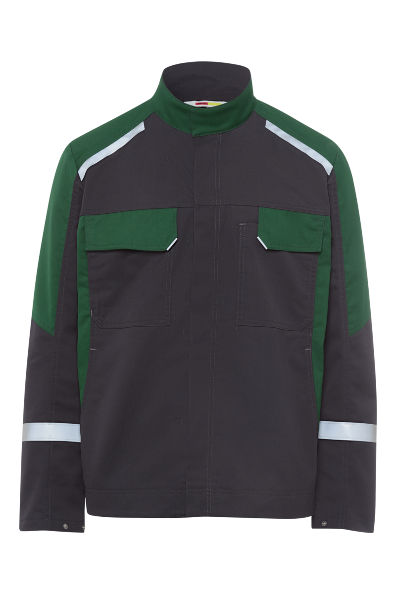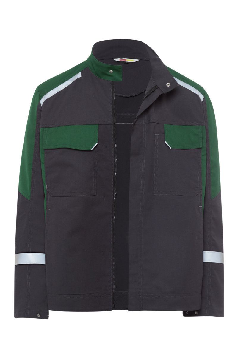 - Reflexelemente befinden sich am Rückenteil unterhalb der Passe, am oberen Teil des Ärmels, an den Grap-Schlaufen an der Patte der Brusttasche