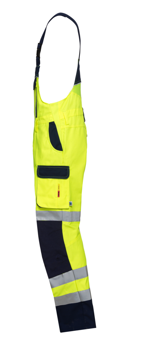 Die Warnschutz-Latzhose vereint Warnschutzklasse 2 mit exzellentem Tragekomfort und optimaler Bewegungsfreiheit. Innovativer 4-Wege-Stretch am Rückenlatz und an den Seiten sorgt dafür, dass der Mitarbeiter sich zu jeder Zeit frei bewegen kann – im Stehen, beim Knien oder im Liegen. Die Warnschutzkleidung der Kollektion „Pro Line HighVis“ überzeugt zudem durch nachhaltige Baumwolle aus dem Fairtrade-Programm. Im Mix mit Polyester schafft sie eine robuste, langlebige und komfortable Arbeitskleidung Für beste Erkennbarkeit am Tag sorgen die Warnfarben Gelb oder Orange. CWS kombiniert sie zum Beispiel mit Dunkelblau, Dunkelgrün und Dunkelgrau. Reflexstreifen an den Hosenbeinen erhöhen die Sichtbarkeit bei schlechten Lichtverhältnissen.