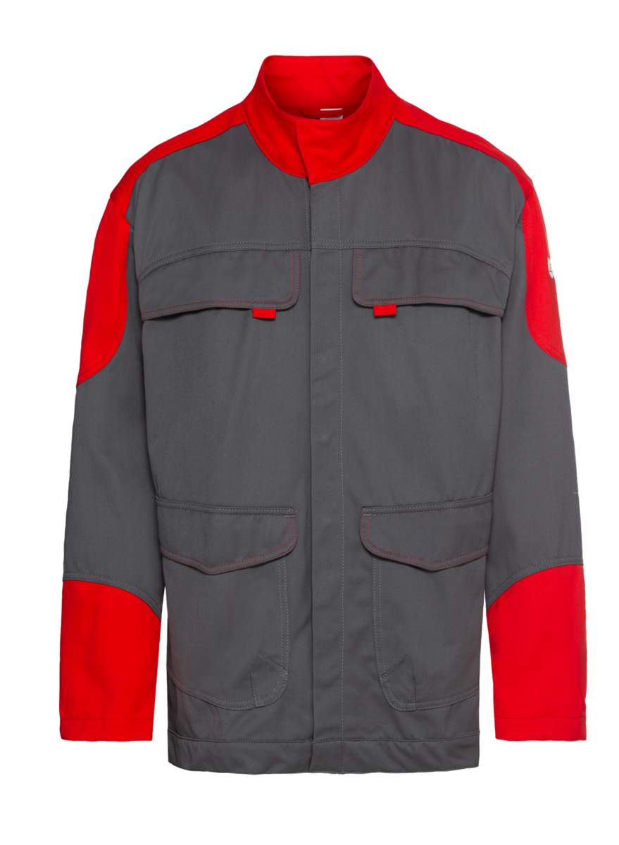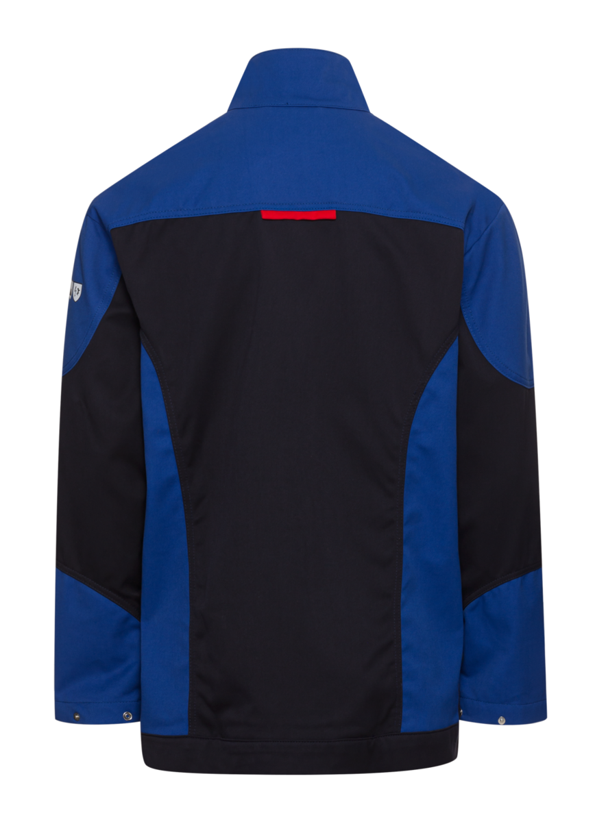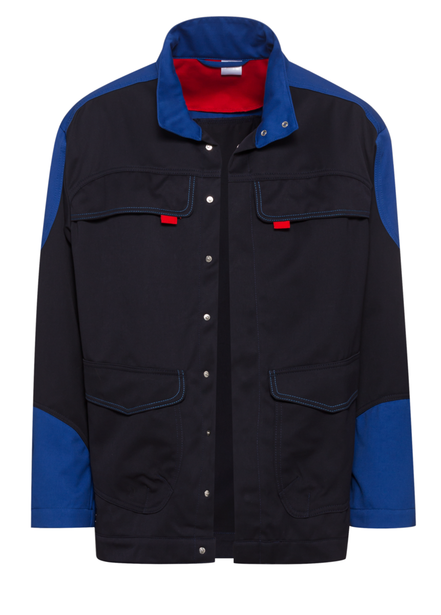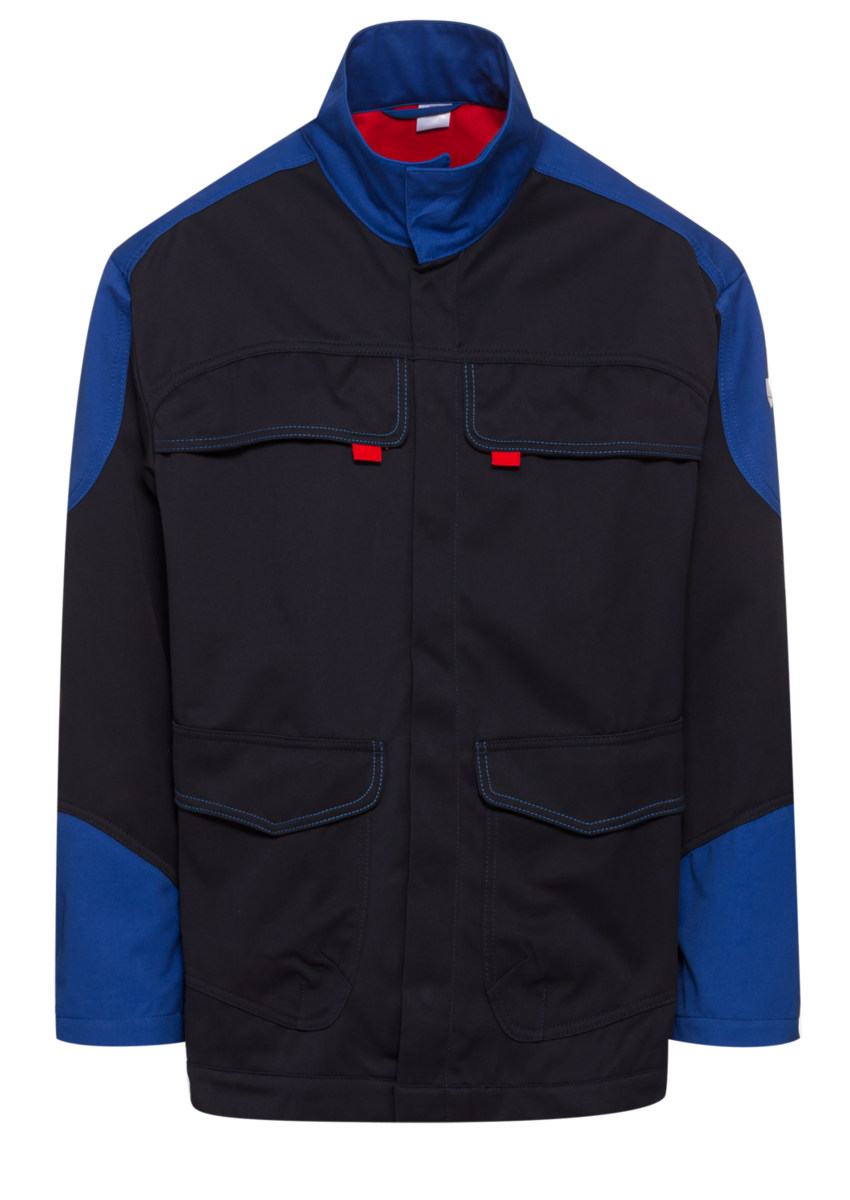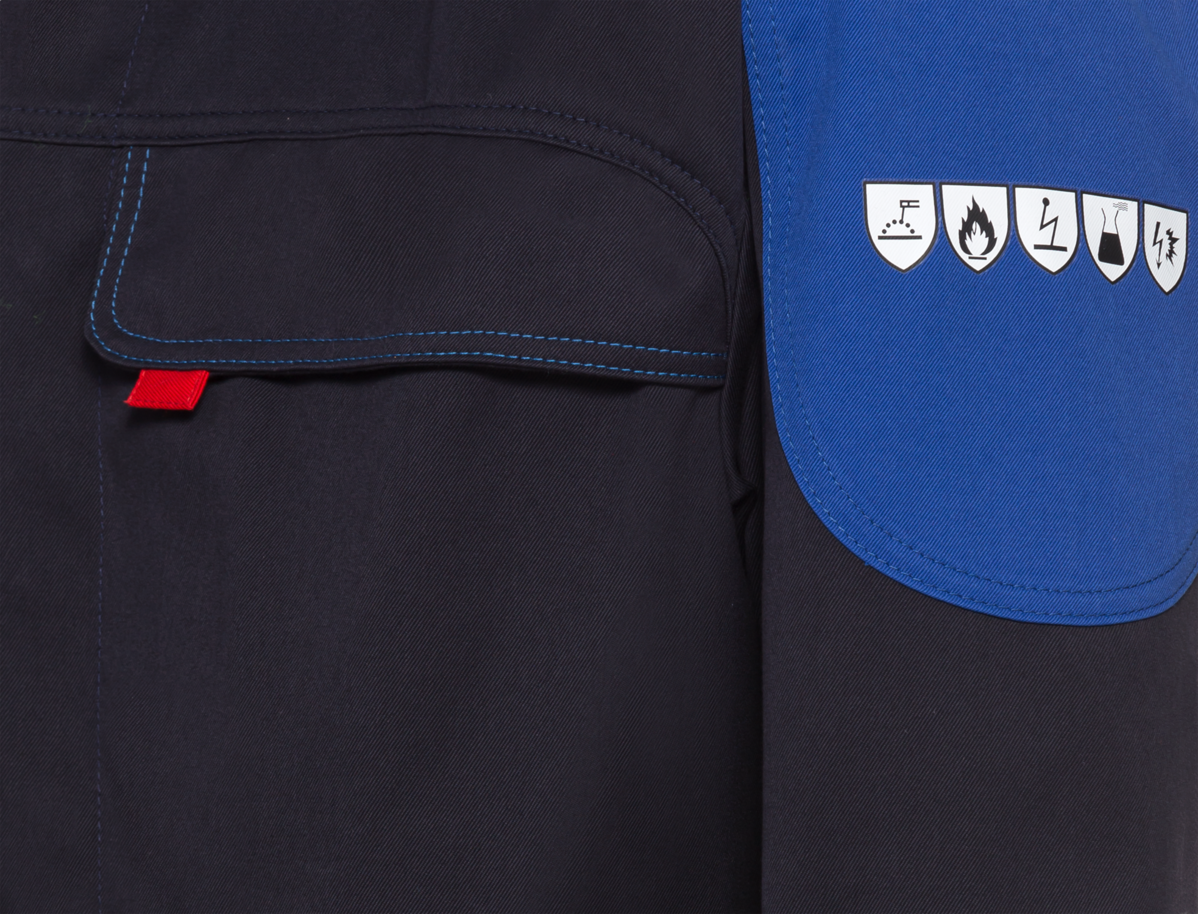 Um ihre wichtigen Schutzfunktionen zu erfüllen, muss die Multinorm-Jacke mit der entsprechenden Bund- oder Latzhose dieser Kollektion kombiniert werden. Der hohe Stehkragen bedeckt eine große Halspartie und schließt ebenso wie die Frontleiste sicher mit Druckknöpfen. Die Jacke besitzt zwei Brusttaschen, zwei aufgesetzte Fronttaschen und eine Innentasche plus zusätzliches Smartphone-Fach – Platz für Utensilien bietet sie also reichlich. Im Sinne der Schutzaufgaben hat CWS die Taschen mit Patten und Druckknöpfen ausgestattet, dies verhindert das Eindringen von Flüssigkeiten und Flammen in den Stoff. Die weitenverstellbaren Ärmelsäume schließen möglichst eng ab.