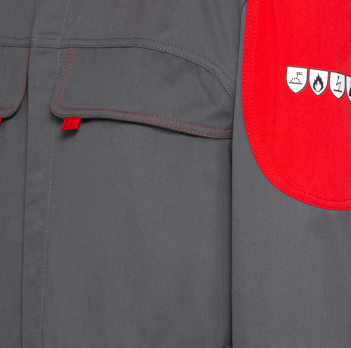- Weitenverstellbare Ärmel, Norm-Piktogramme auf dem linken Ärmel