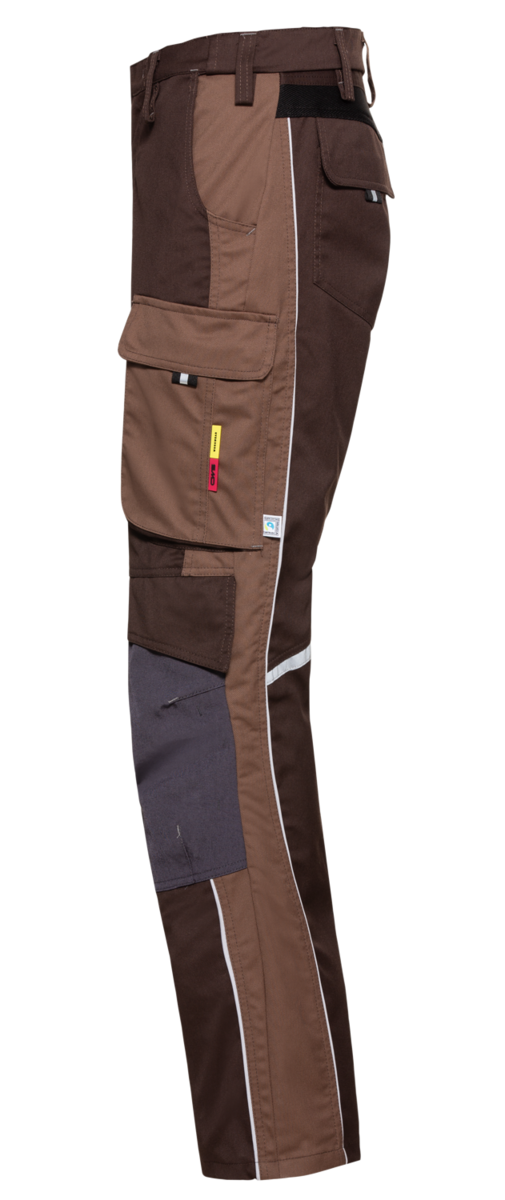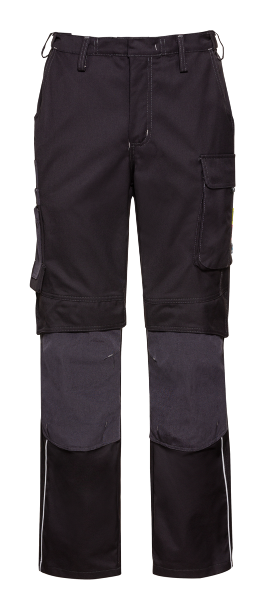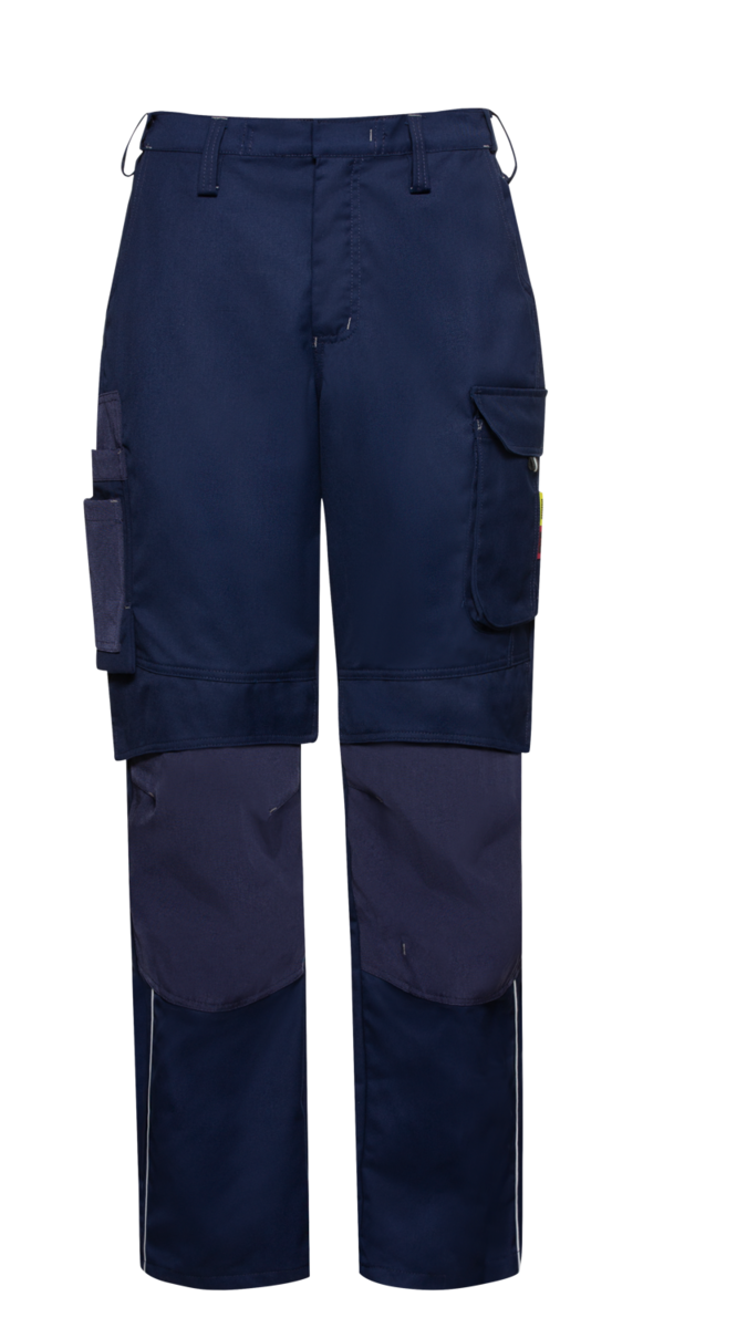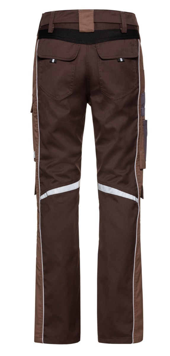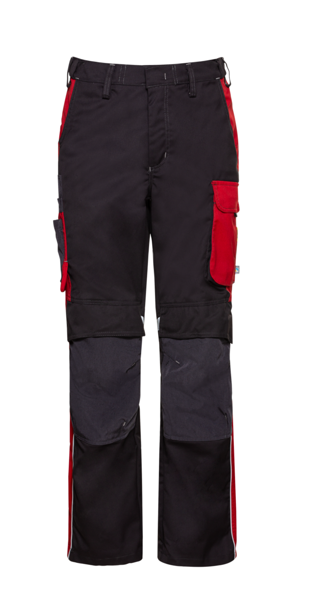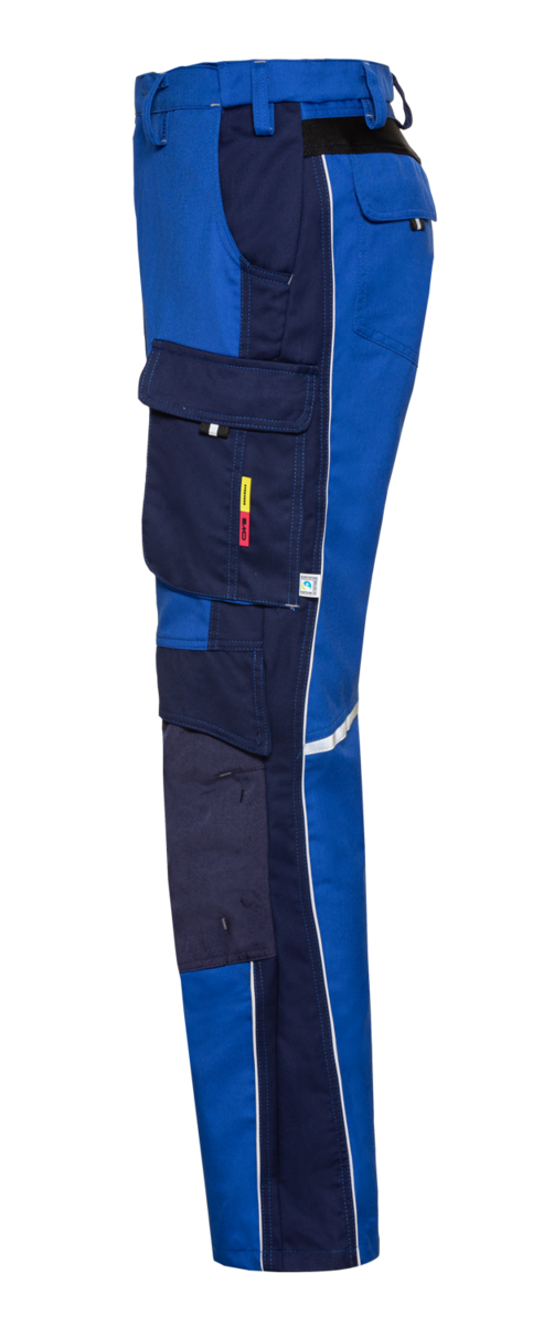 Die Bundhose aus der Kollektion „Pro Line“ verfügt trotz ihrer körpernah geschnittenen Silhouette über zahlreiche Taschen an Seiten und Gesäß, in denen Schrauben, Stifte und Werkzeug mehr als genug Platz haben. Zwei speziell aufgesetzte Taschen sind extra für Smartphone und Zollstock reserviert. Ergonomisch geformte Cordura®-Knietaschen sind mit wenigen Handgriffen von oben mit Polstern befüllbar, dadurch werden die empfindlichen Kniegelenke selbst bei Dauereinsätzen geschont. Auf der Rückseite erhöhen reflektierende Elemente die Sichtbarkeit.