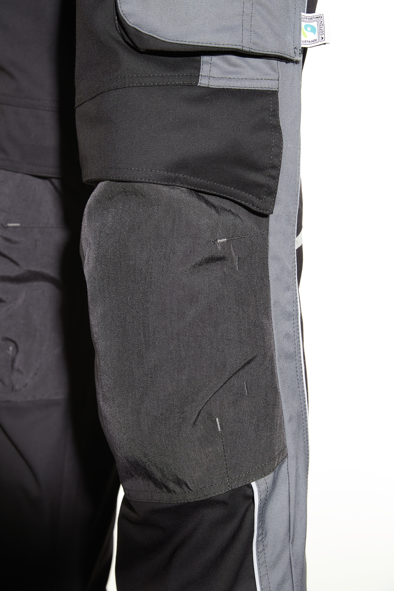 CWS Workwear arbeitet bei der „Pro Line“ mit renommierten Partnern wie Unifi REPREVE® und Fairtrade zusammen, um die Verwendung von nachhaltigen Materialien sicherzustellen – bei der Bundhose ein Mix aus 65 % Polyester und 35 % Baumwolle. Das Polyester besteht aus recyceltem Plastik, was den CO2-Fußabdruck nachweislich reduziert und natürliche Ressourcen schont. Die Baumwolle stammt aus dem Fairtrade-Programm, welches die Biodiversität in den Anbauländern durch deutlich reduzierten Pestizid- und Chemikalieneinsatz fördert und sich weltweit für faire Löhne und Arbeitsbedingungen einsetzt. Die Produkte aus der „Pro Line“ sind recyclingfähig und zudem so entwickelt, dass Fachreparaturen und (Größen-)Änderungen problemlos und ressourcenschonend möglich sind.