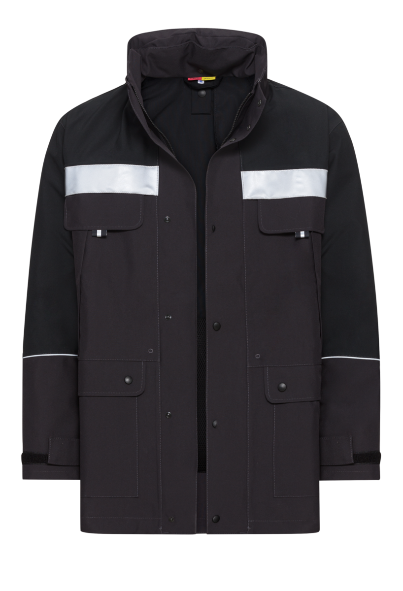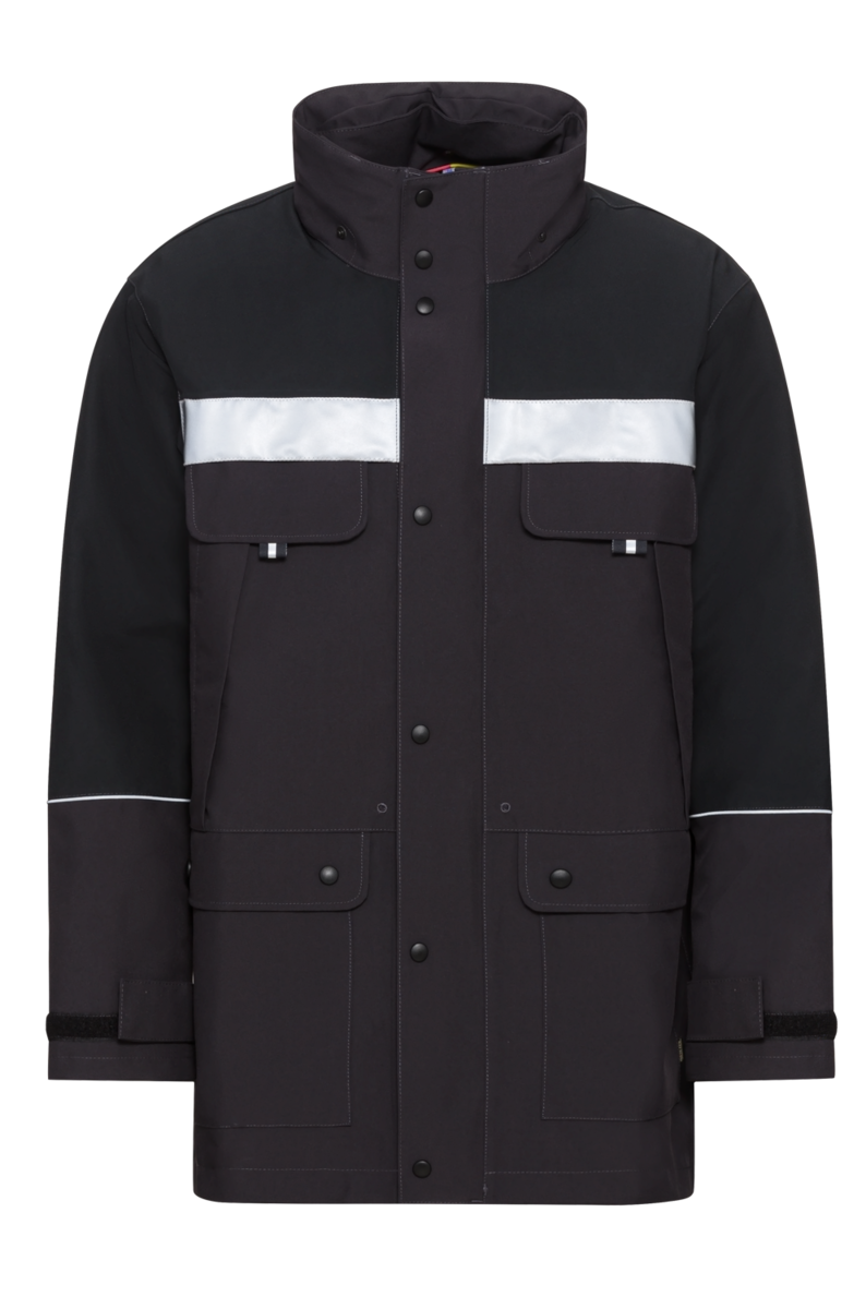 Zu den vielen Qualitäten des Parka GORE-TEX® zählen mehrere Taschen für Utensilien. Dazu gehören zum Beispiel zwei Brusttaschen mit Reißverschluss, zwei aufgesetzte Seitentaschen mit Patten und Druckknöpfen und eine Innentasche mit Klettverschluss. Reflektierende Elemente erhöhen die Sichtbarkeit des Mitarbeiters.
