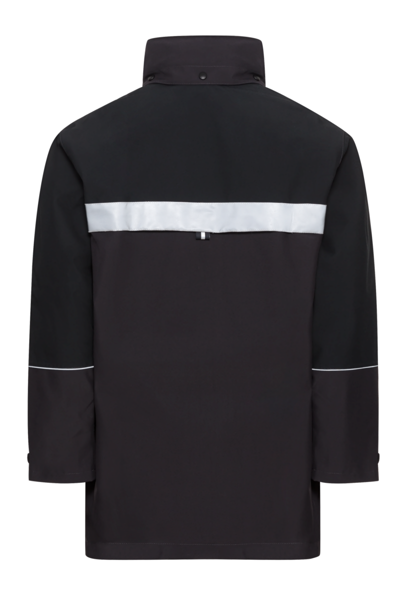 - Hochschließender Stehkragen mit integrierter, größenverstellbarer Kapuze inklusive Regenschild