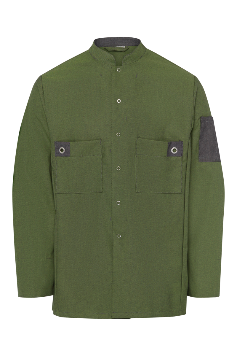 Ökologisch und „Made in Europe“: Die modische Bistrojacke „Scandic Line“ für Herren sieht nicht nur gut aus, sie ist auch gut. Gut für die Umwelt und gut beim täglichen Einsatz auf der Arbeit. Das umweltschonend hergestellte Gewebe aus recyceltem Polyester und recycelter Baumwolle trägt sich angenehm leicht und kühl auf der Haut. Funktionale Details unterstützen den Tragekomfort zusätzlich. So sind die Ärmel dieser Thekenjacke ergonomisch geformt und unterstützen die Bewegungsfreiheit. Unter den Armen sind Lüftungsöffnungen eingearbeitet, die speziell in feucht-heißen Küchen für eine bessere Luftzirkulation sorgen. Der Nackenbereich und die Armmanschetten wurden in einem leicht kontrastierenden Anthrazit gearbeitet, um einer vorschnellen Verschmutzung vorzubeugen. Diese Kochjacke für Herren ist langlebig und punktet mit einer hohen Farb- und Formbeständigkeit, auch bei täglicher Wäsche. Die Kochjacke schließt mit Druckknöpfen, die in einem Notfall ein schnelles Ausziehen der Jacke erlauben. Zwei Brusttaschen nehmen Arbeitsutensilien auf. Die Bistrojacke aus der “Scandic Line”-Kollektion eignet sich perfekt für den Einsatz im Lebensmitteleinzelhandel, in Supermärkten und Biomärkten, an deren Frischetheken, in Metzgereien und Fleischereien, Bäckereien und Konditoreien sowie im Obst- und Gemüseverkauf. Auch in der Systemgastronomie, dem Catering, in Restaurants und Kantinen trägt die klare Kollektion zu einem modernen Auftritt und einem stimmigen Gesamteindruck bei.