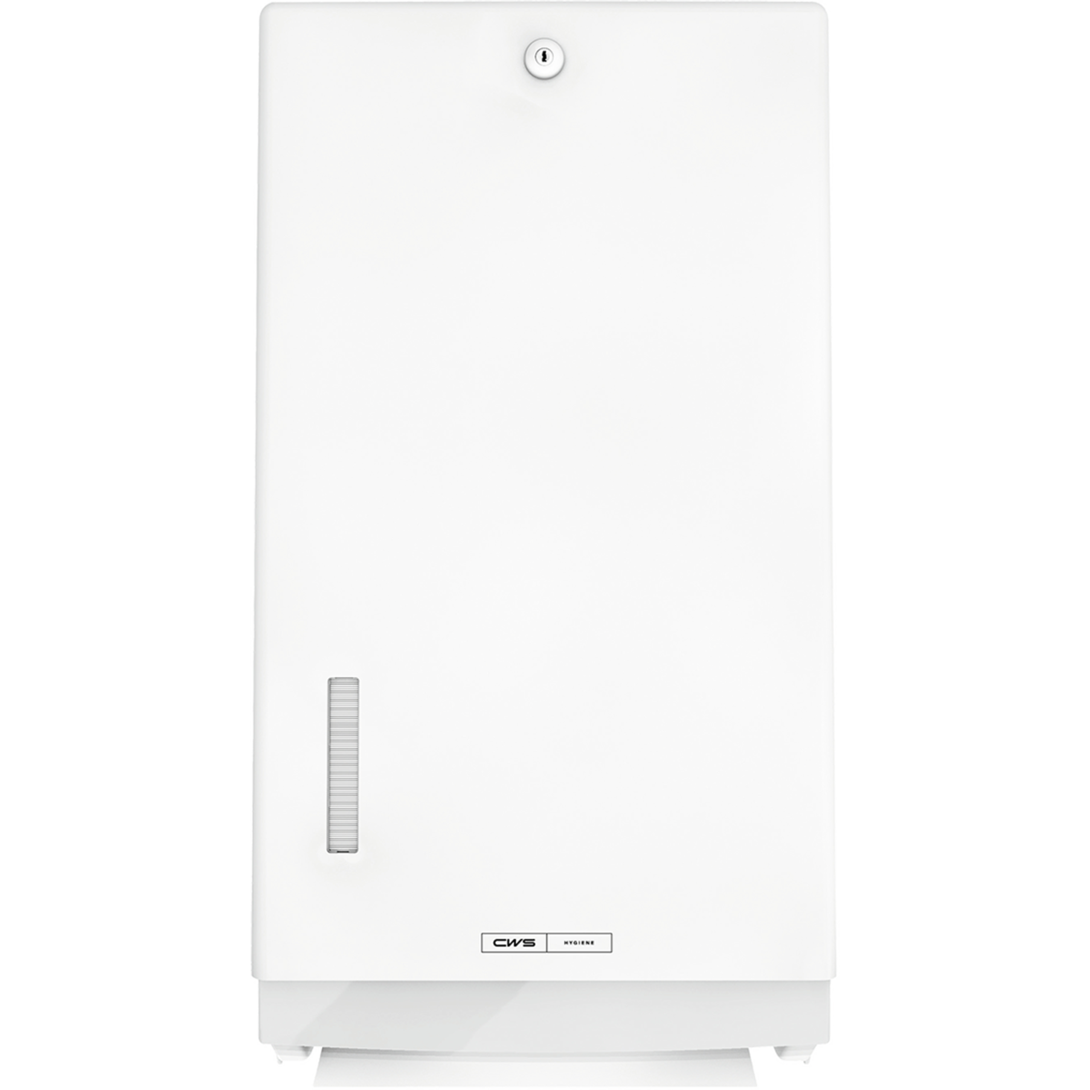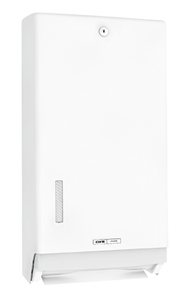 Der Papiertuchspender ist in schlichtem Weiß gehalten und fügt sich dezent in Waschräume, Küchen oder Labore ein. Selbstverständlich kann er mit allen weiteren Produkten aus der ParadiseLine von CWS kombiniert werden.