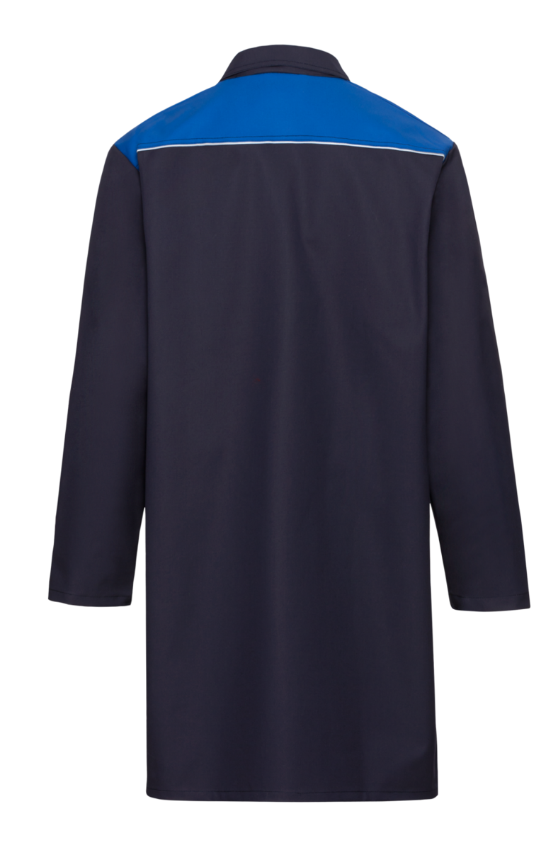 Zu den Details des in Blautönen erhältlichen Kittels zählen der hohe, verschließbare Umlegekragen, ein Frontverschluss mit verdeckten Druckknöpfen und weitenverstellbare Ärmel. Front- und Rückenpasse setzen Farbakzente in hellem Blau. Die Reflexpaspel auf der Vorder- und Rückseite erhöht die Sichtbarkeit bei schlechten Lichtverhältnissen. Auch Platz für Utensilien gibt es: CWS hat eine Brusttasche und zwei Seitentaschen auf der Vorderseite angebracht – alle drei verfügen über Patten und verdeckte Druckknöpfe. Hinzu kommt eine Brustinnentasche.