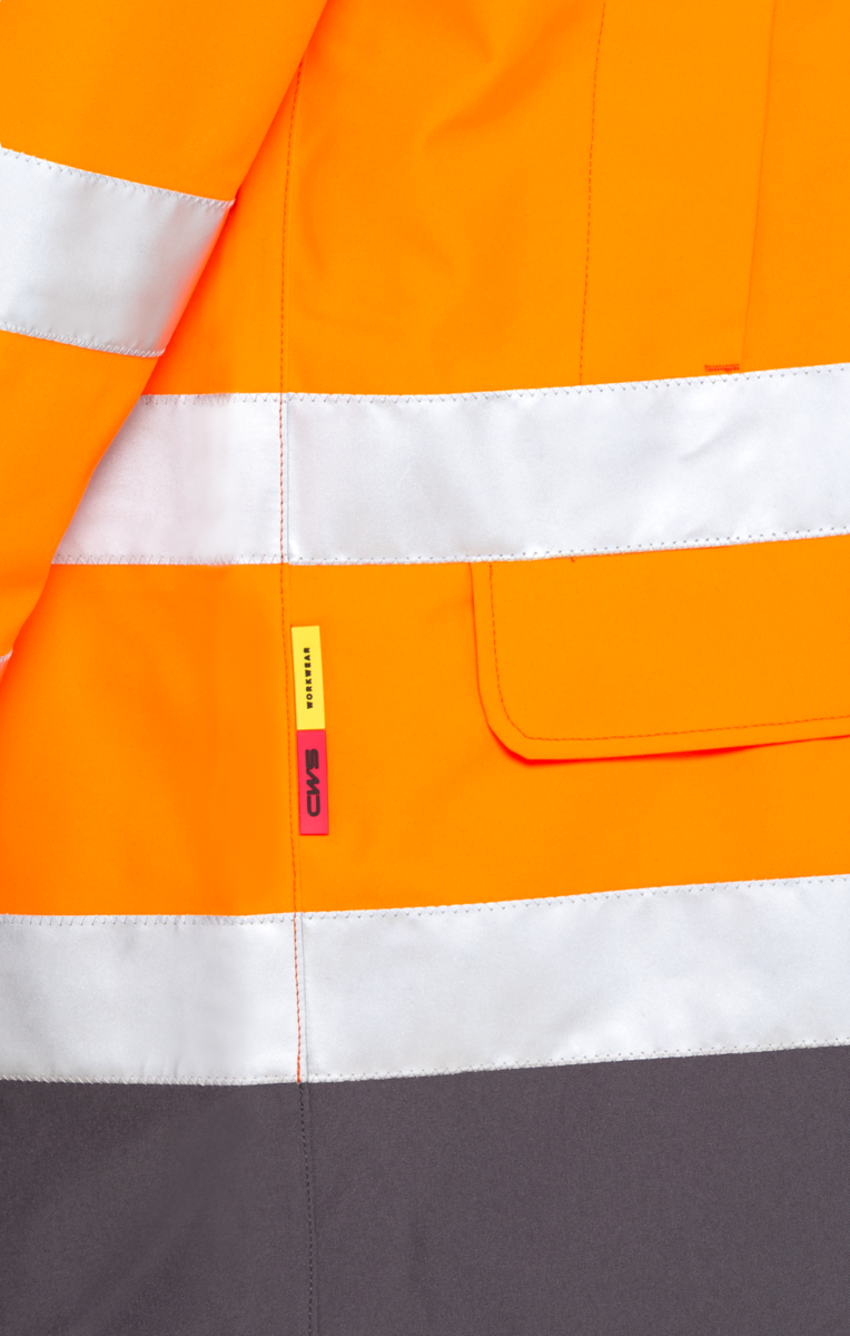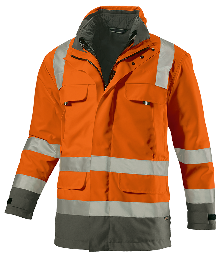 Mit diesem Warnschutz-Parka sind Mitarbeiter ganzjährig bestens ausgerüstet. Dank GORE-TEX®-Membran hält die Jacke den Träger auch bei starkem Regen zuverlässig trocken – wird die Kapuze nicht gebraucht, lässt sie sich praktisch im Kragen verstauen. Das Material schützt auch vor dem Windchill-Effekt: Es beugt einerseits dem Auskühlen vor und bewahrt den Körper an heißen Tagen vor Überhitzung.