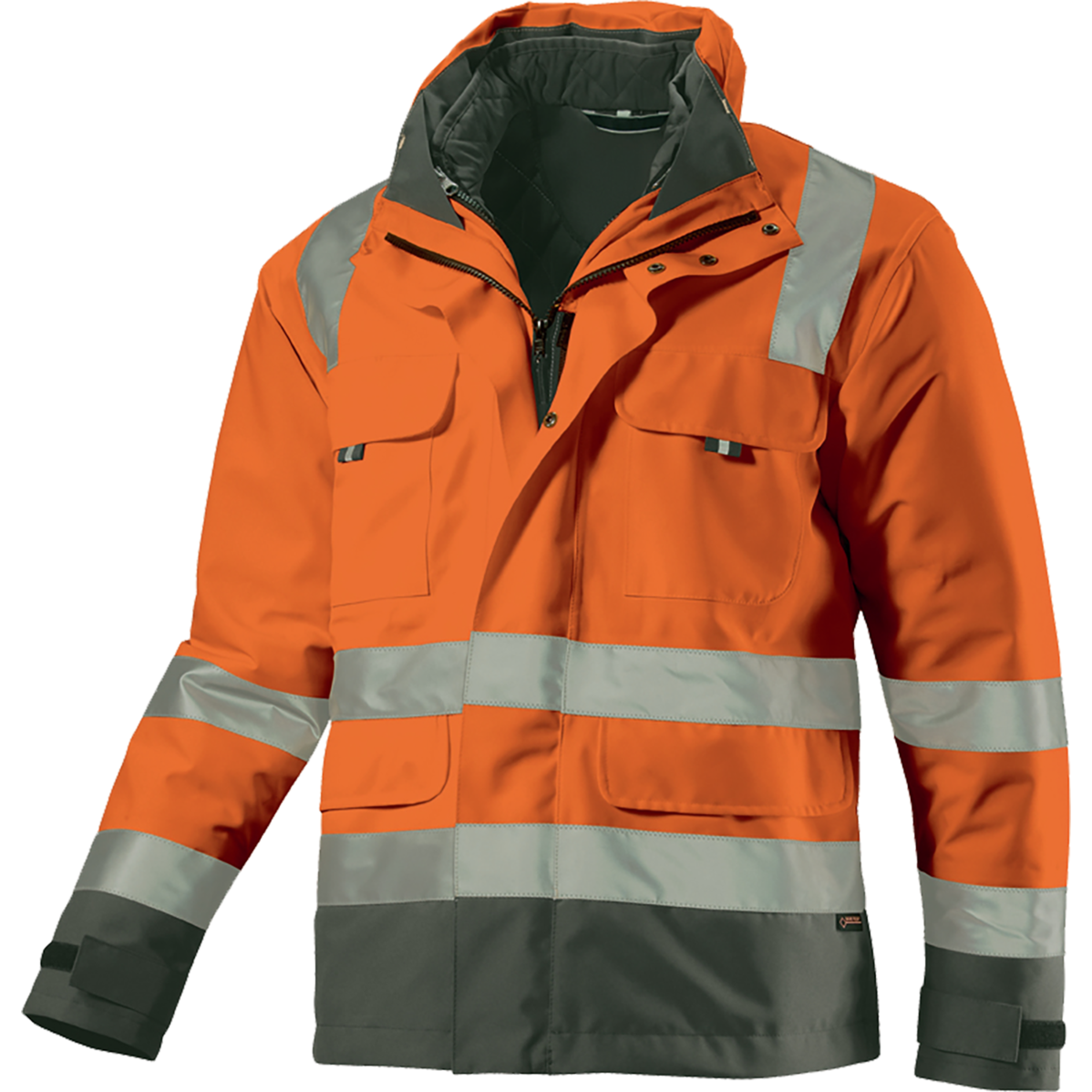 - In den Parka lassen sich die Softshelljacke Core HighVis, die Softshelljacke Pro Line HighVis sowie die wattierten Arbeitsjacken einzippen