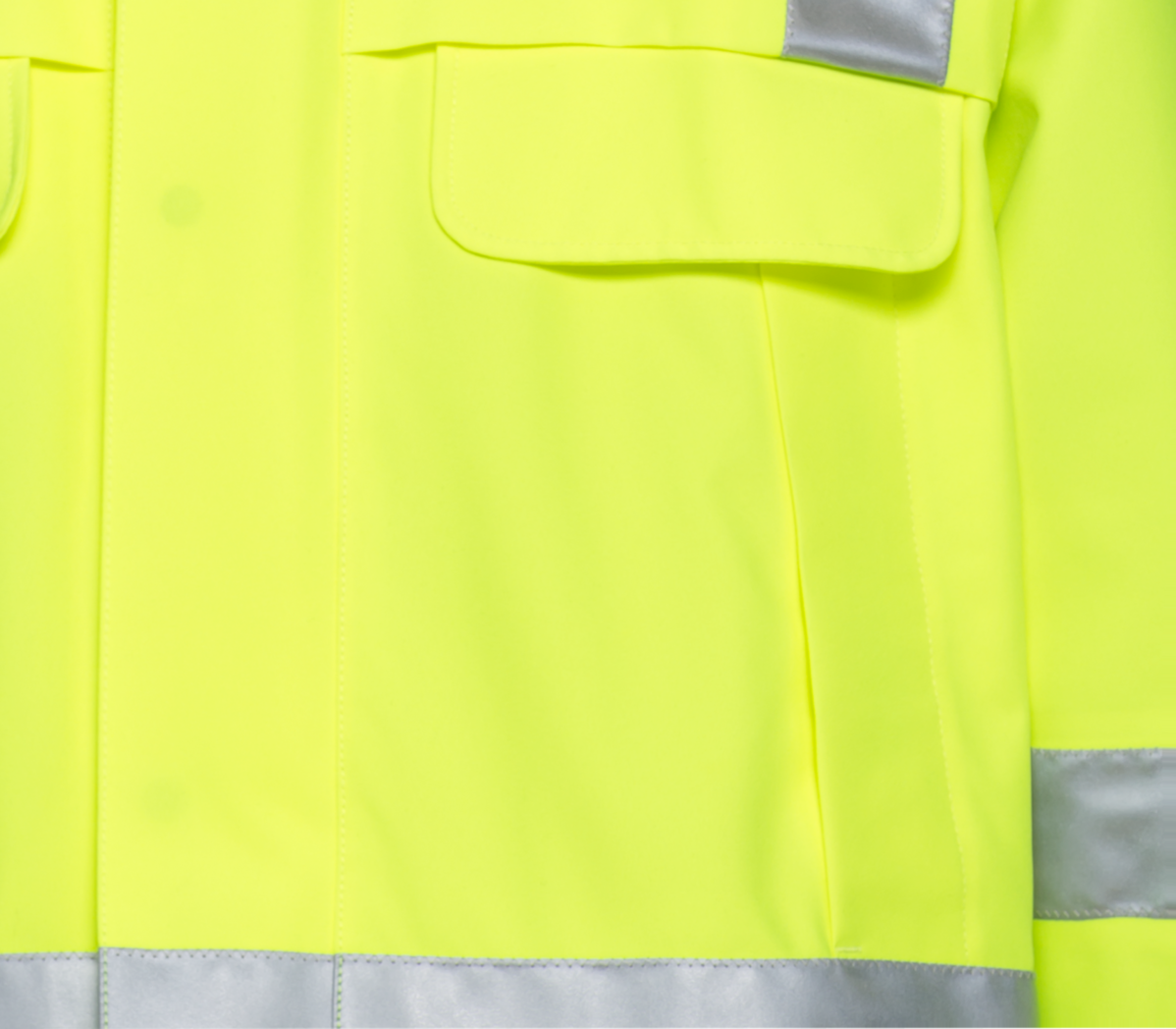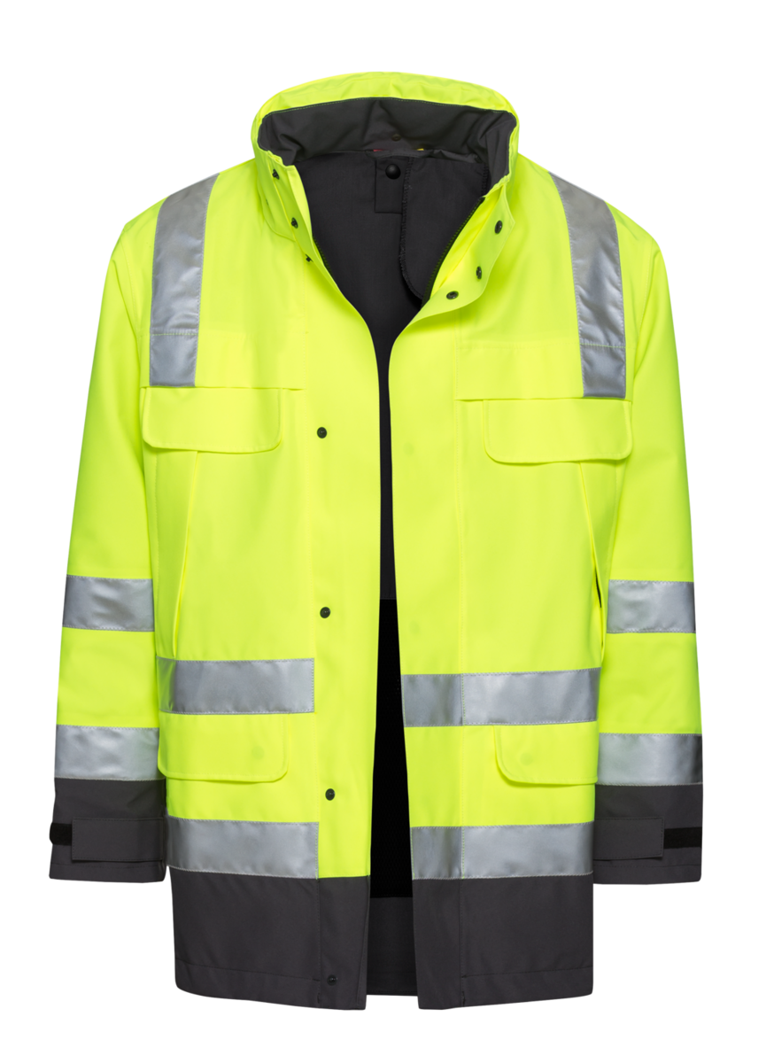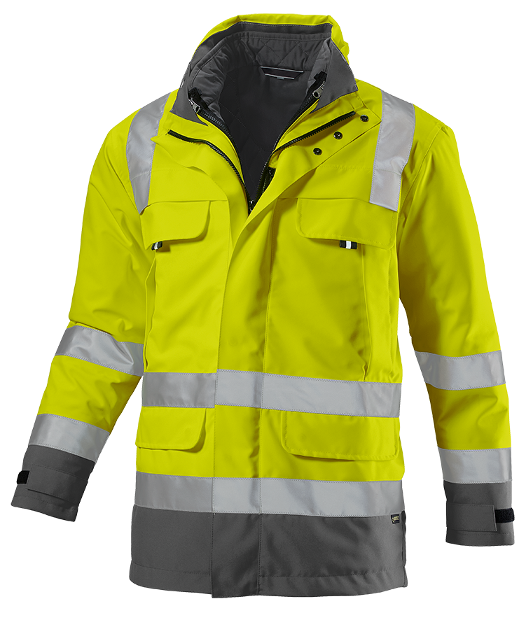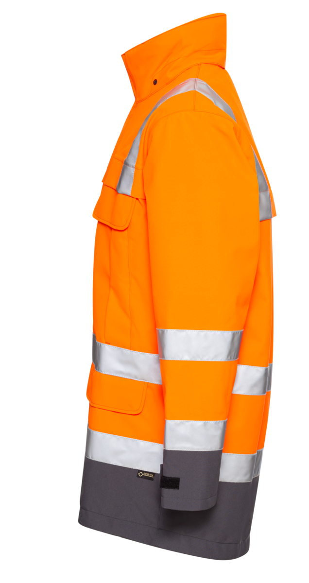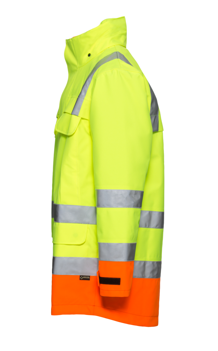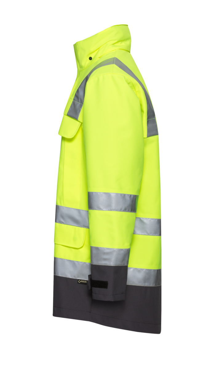 Der Warnschutz-Parka mit GORE-TEX®-Membran erzielt Warnschutzklasse 3. Er ist atmungsaktiv, wasser- und winddicht.