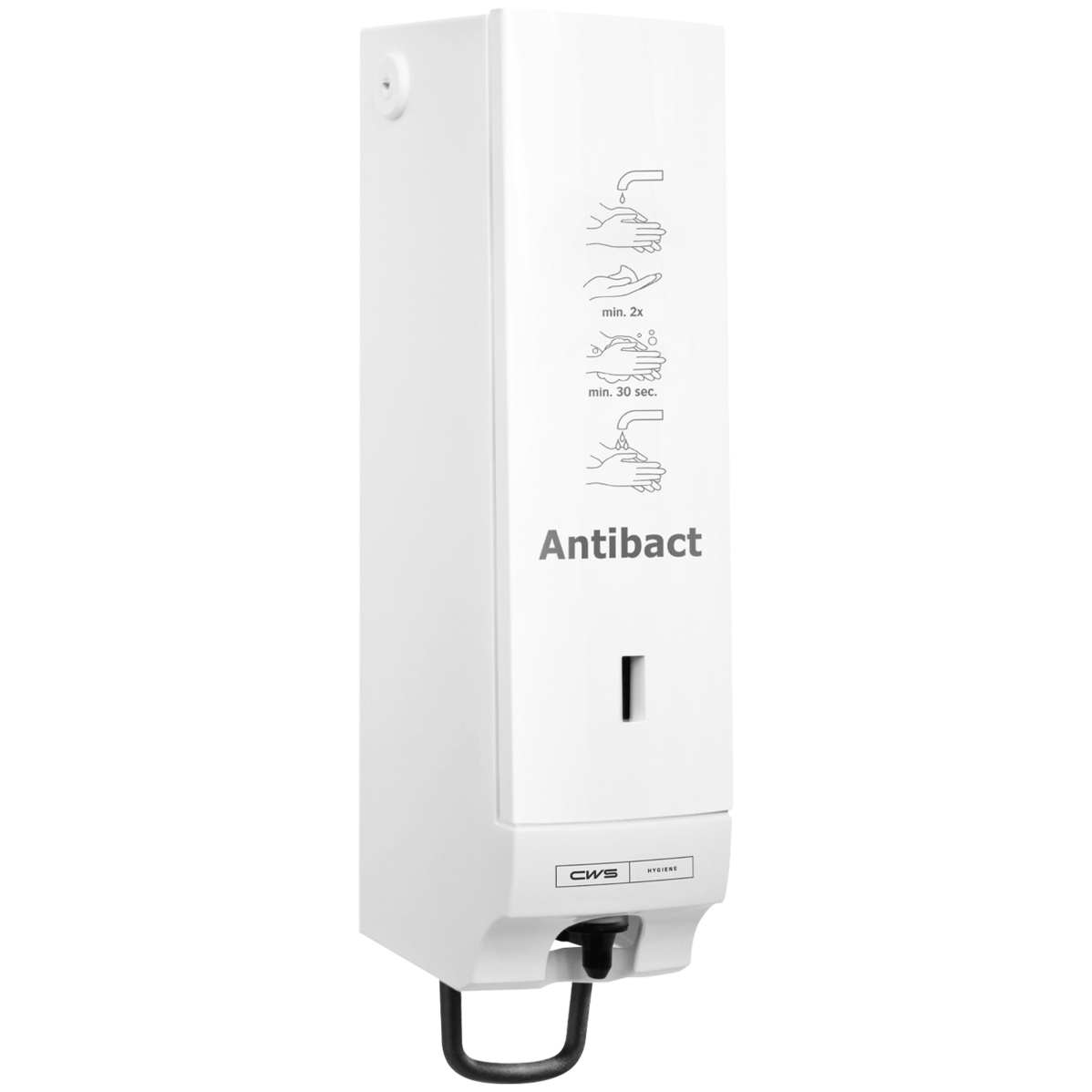 Befüllt wird der Seifenspender mit CWS Best Antibact Schaumseife, einer antibakteriellen Seife mit bakterizider, levurozider und begrenzt viruzider Wirksamkeit, die u. a. Influenzaviren wirksam bekämpft.