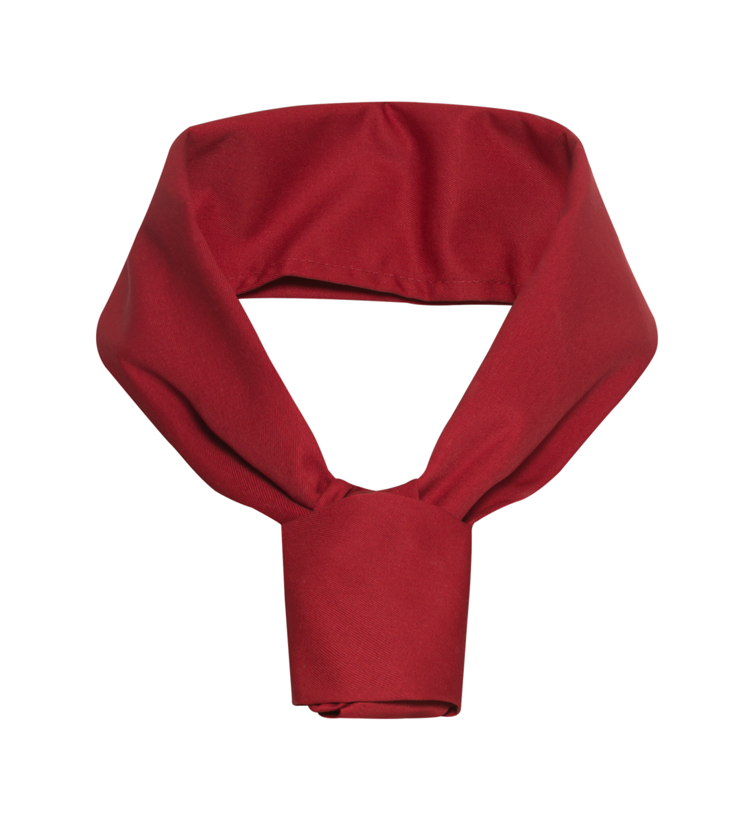 This neckerchief completes the professional chef's workwear. The triangular scarf is wrapped around the neck and ensures above all that sweat is absorbed and does not soak the collar of the chef's jacket. In this way, it protects the neck from inflammation. Also, if the workplace is changed frequently -- from the hot kitchen to the cold cold room or freezer and back to the hot kitchen -- the unprotected neck would be exposed to comparatively high temperature fluctuations and could quickly become sore.