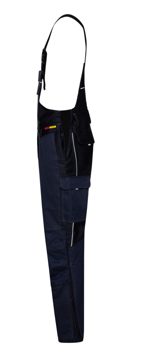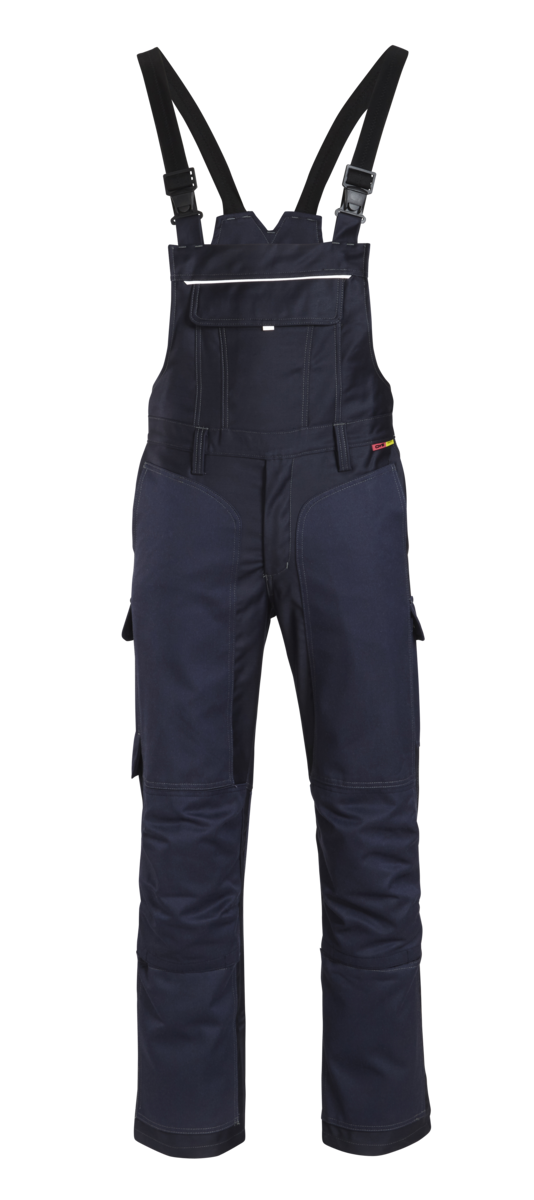 The dark blue dungarees feature a concealed waistband button, ergonomic knee pad pockets and elasticated braces with quick-release buckles, plus there are seven pockets offering plenty of storage space for tools. The design of the Pure Welding 2 line goes really well with proFlex4® Advanced and Metaller workwear. Together the ranges produce a uniform team look. Please note: The work dungarees can only fulfil their essential protective function when worn in combination with the corresponding work jacket.