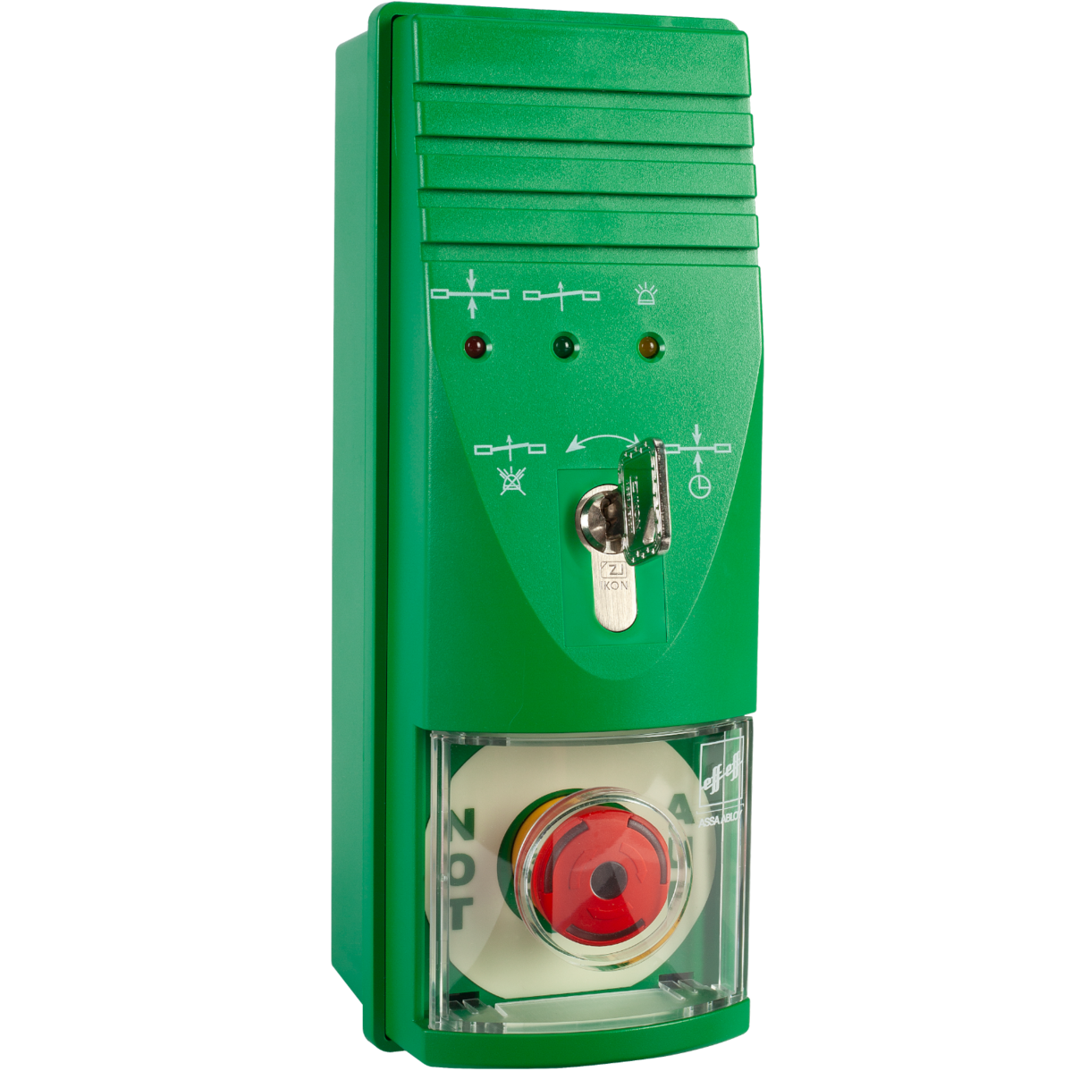 Our escape route terminals can be set so that escape doors function either locked, permanently unlocked or temporarily unlocked. In addition, our door control units are made of high-quality plastic, metal or stainless steel housings in stainless steel, white or green. They are functional at an ambient temperature of -10 °C to +50 °C.