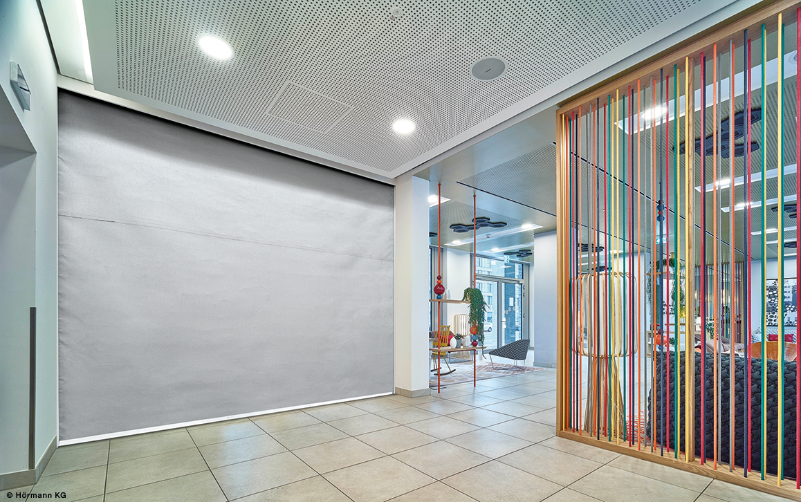 Fire protection curtains are textile flexible systems (textile fire protection closures) for fire closures in an open room design. They are installed concealed in the ceiling and roof area. In normal operation, a fire curtain is rolled up to save space and is only lowered in the event of a fire. The automatic closing of the fire curtain immediately counteracts the spread of dangerous smoke and fire gases. For this purpose, they are made of a special glass fabric and are available in different fire resistance classes.