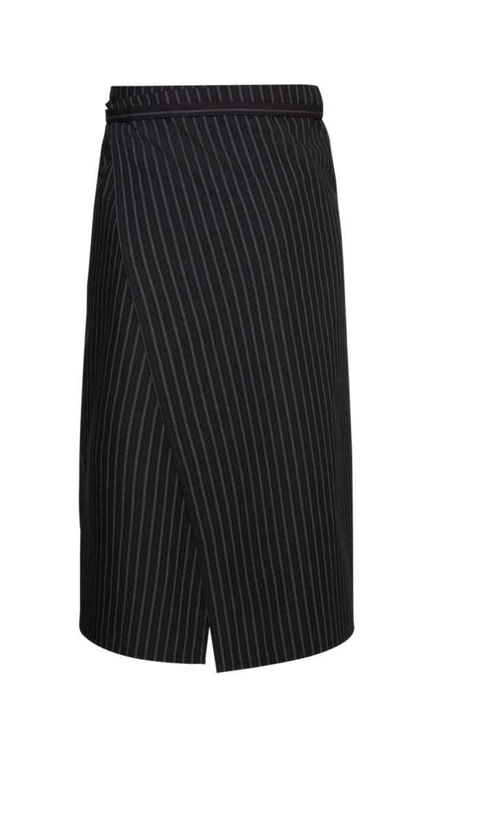 Traditionnel et moderne à la fois : le discret motif à rayures du tablier de bistrot "Coast Line" ; peut être stylisé de manière classique et élégante, mais aussi de manière décontractée et moderne, selon le haut et les accessoires choisis. Le demi-tablier noir arrive approximativement jusqu'au milieu des mollets ; il est fait avec des fentes de marche pour un haut niveau de confort. La largeur peut être ajustée individuellement grâce à deux liens fixes et extra-longs à la taille. Cela permet de nouer (facilement) le tablier devant le corps et de l'adapter même aux grands tours de taille. Les poches sont situées en dehors de la "zone de salissure" : deux poches latérales sont placées dans la couture de séparation. Le tablier de bistrot est fabriqué dans un matériau robuste et facile à entretenir. Il est idéal pour les restaurants, les hôtels et le commerce de détail alimentaire. Le tissu mélangé est résistant, les couleurs ne s'altèrent pas même après des lavages fréquents , et le matériau est également très stable dimensionnellement et résistant aux plis.
