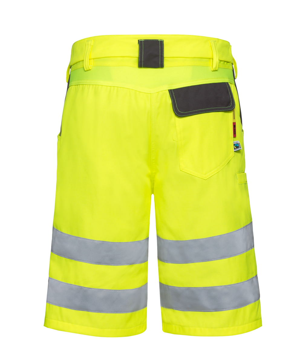 The high-visibility shorts are part of the Pro Line HighVis range. Innovative 4-way stretch material means the wearer benefits from optimal freedom of movement and high wearing comfort – that makes working when kneeling or bending over easier in particular. The fluorescent colours yellow and orange achieve warning protection class 1 and reflective stripes around the short legs increase the visibility of the wearer in poor light conditions. CWS uses sustainable cotton from the Fairtrade programme among other materials for the high-visibility clothing. The material blend includes polyester to make the textile extremely sturdy and durable. With these Bermuda shorts, CWS is offering the ideal product for warmer working days.