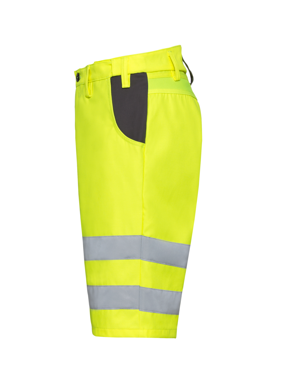 The high-visibility shorts feature two side pockets plus a flap pocket on the back with press stud and a particularly spacious folding rule welt pocket on the right. The padded legs and raised comfort waistband ensure the shorts are pleasant to wear.