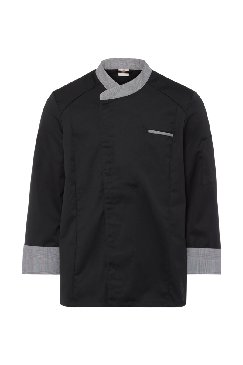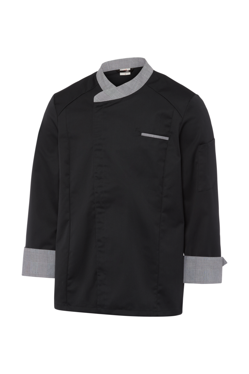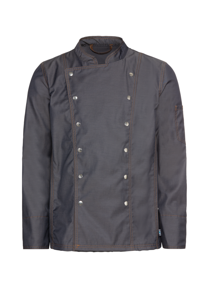 Cette veste de chef "Boston Line" ; à manches longues'a un look denim très tendance. Elle s'adapte idéalement aux concepts de gastronomie créatifs et jeunes, tels que les food trucks ou les restaurants BBQ, ainsi qu'aux hôtels branchés et aux commerces modernes. Le denim se caractérise par un grand confort de port et une durabilité robuste. Vos chefs apprécieront la qualité du tissu respirant, agréable pour la peau et léger. Les manches longues de cette veste de chef protègent les avant-bras de la vapeur, des températures élevées de la cuisinière et des éclaboussures de liquides. La veste de chef se ferme par une fermeture à boutons-pression à double boutonnage ; les boutons-pression permettent de mettre la veste rapidement et de l'enlever rapidement en cas d'urgence. La teneur élevée en coton rend la veste de chef agréable à porter sur la peau ; la teneur en polyester assure une excellente conservation de la forme, même en cas de nettoyage quotidien. La veste de chef pour homme dispose d'une poche à stylo sur le bras gauche, d'un col montant classique et de larges poignets de bras.