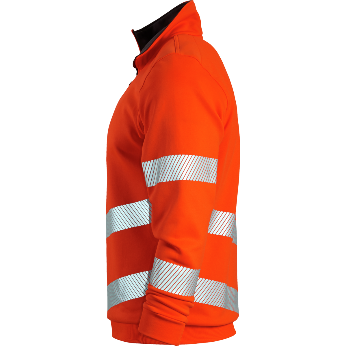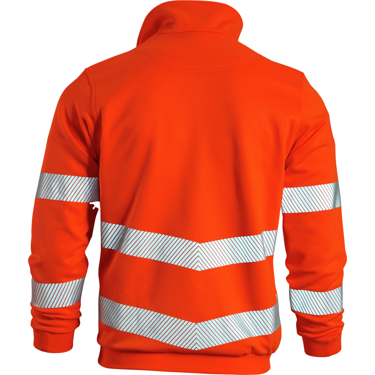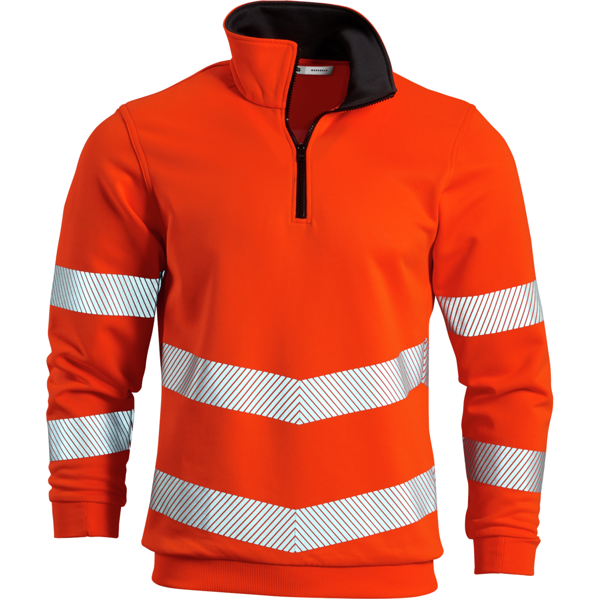 Le sweat-shirt à demi-zip de la collection de vêtements haute visibilité est idéal pour les journées plus fraîches et peut être rapidement enfilé par-dessus les T-shirts assortis. Il correspond à la classe de protection d'avertissement 2 et est disponible en jaune sécurité et orange sécurité. Les groupes cibles possibles sont les entreprises de gestion des déchets municipaux, de logistique et de transport. Les couleurs de sécurité assurent une bonne visibilité pendant la journée, tandis que les bandes réfléchissantes sur tous les côtés attirent l'attention sur le porteur dans des conditions de faible luminosité et dans l'obscurité. Comme elles sont appliquées sous forme de patchs, elles peuvent suivre vos mouvements et ne sont pas rigides. Le sweat-shirt offre également une protection contre les UV - idéale pour travailler en extérieur.