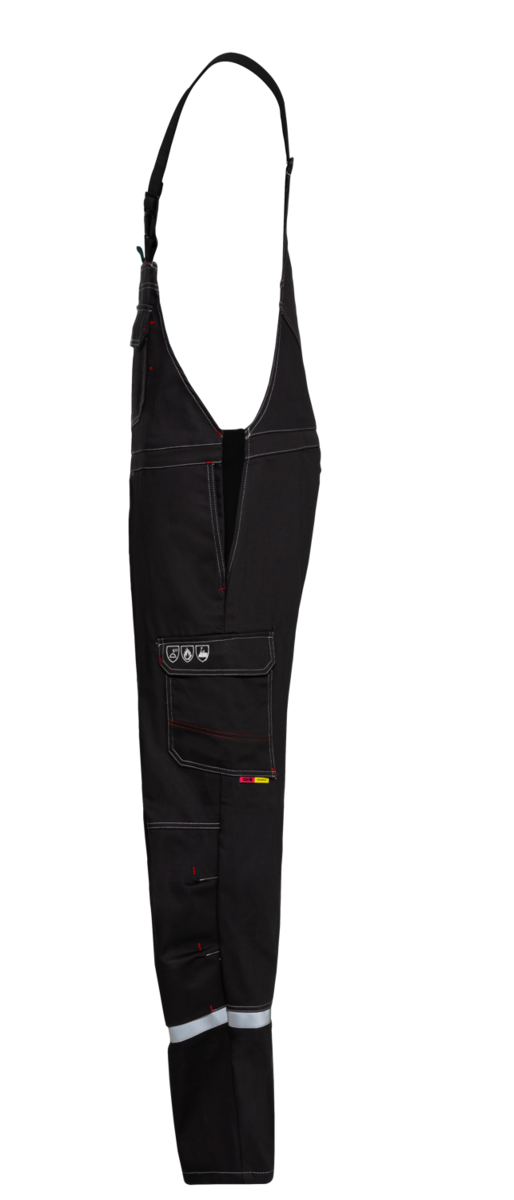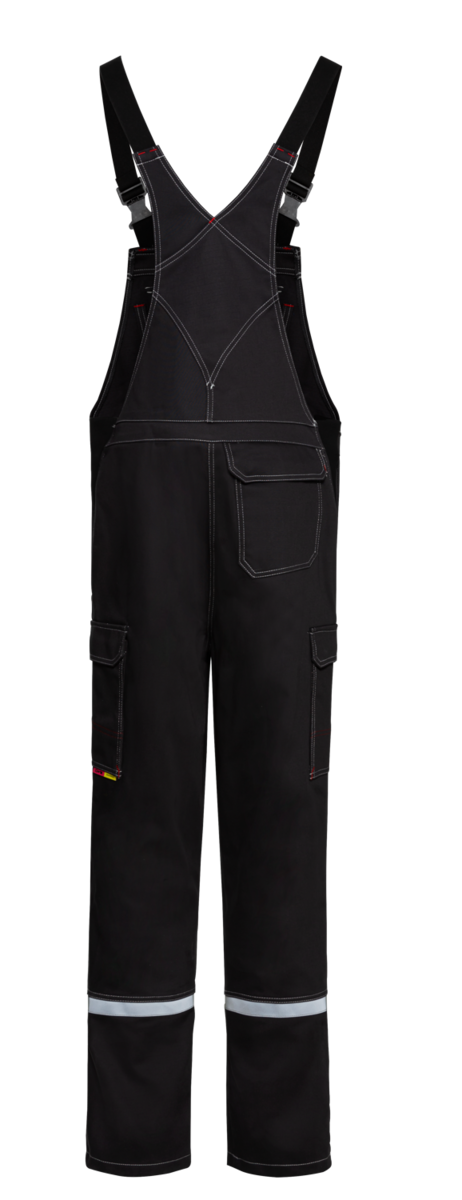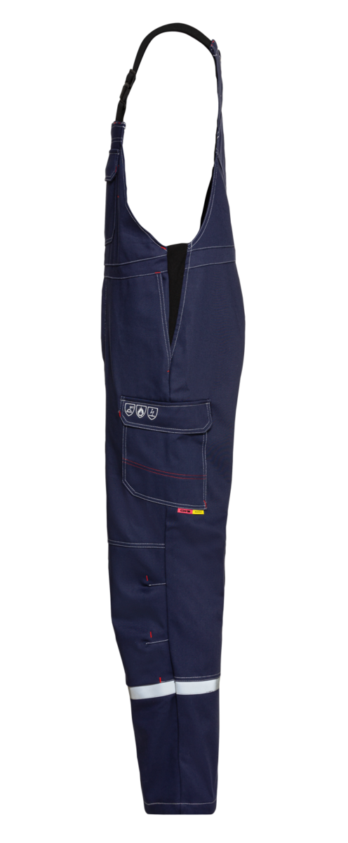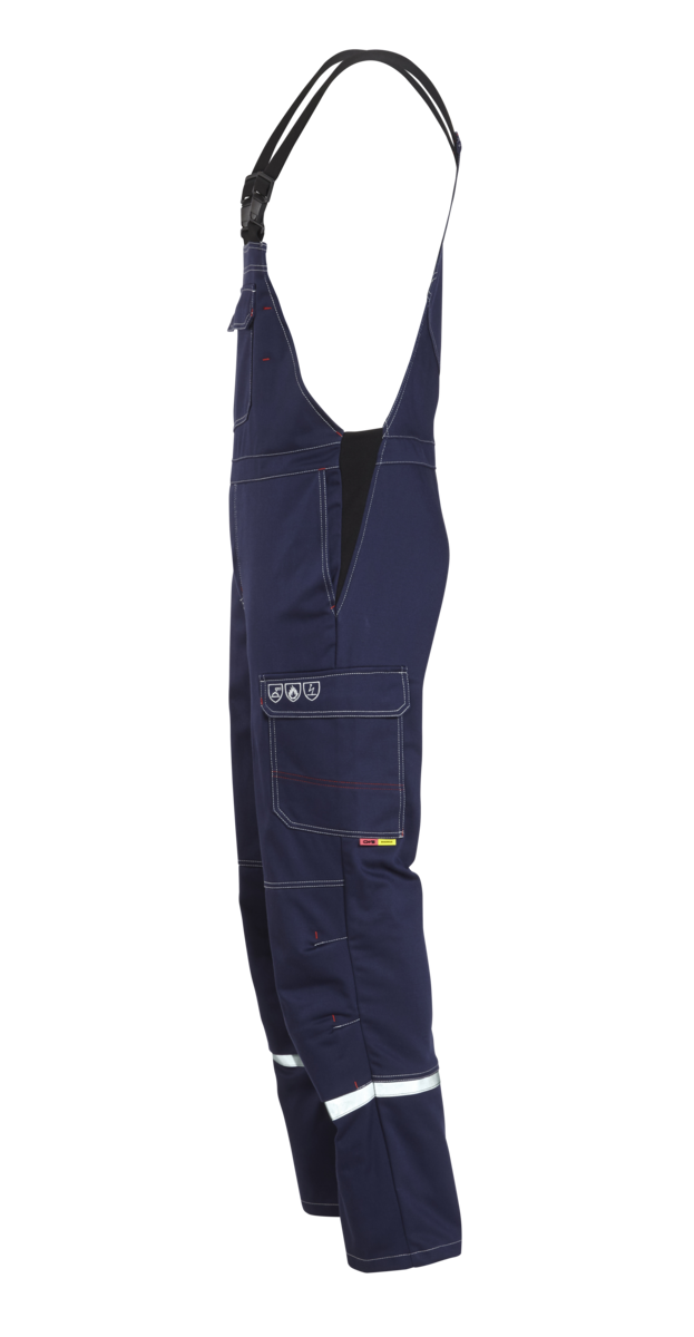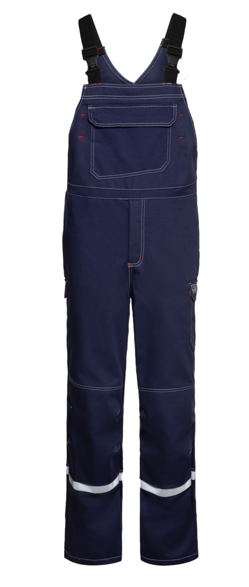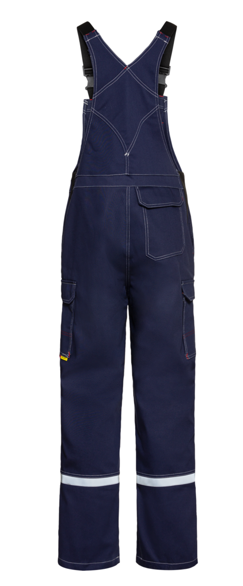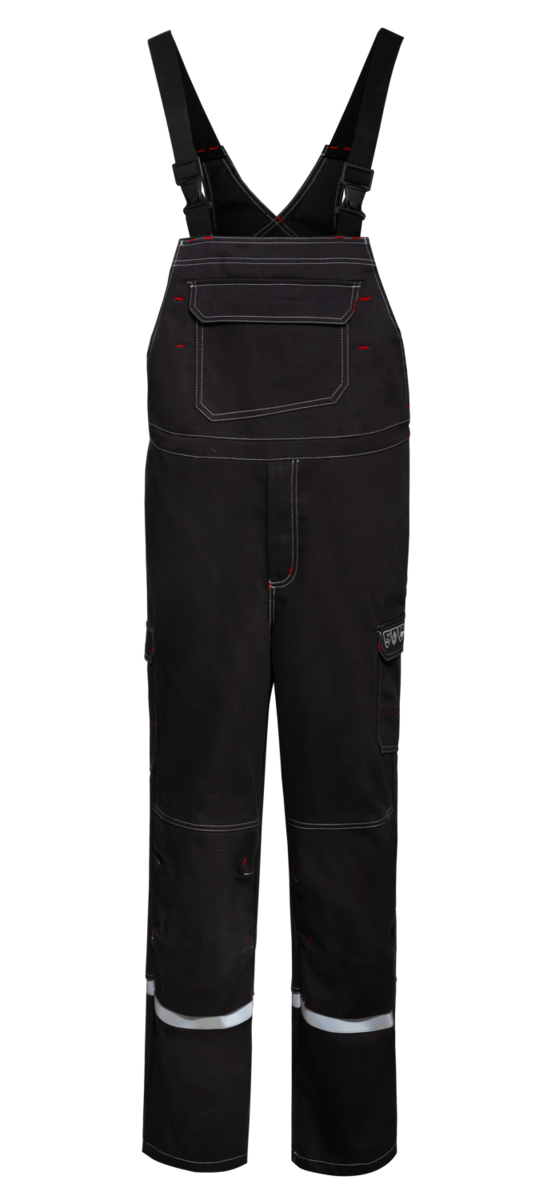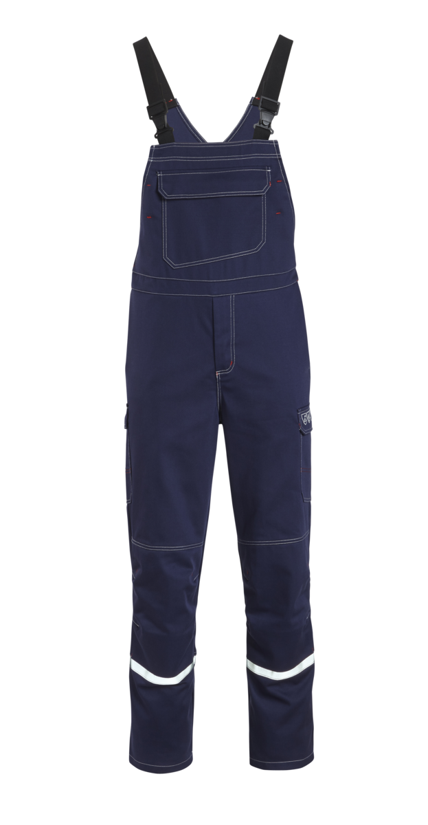 .La salopette comporte une braguette dissimulée, des bretelles élastiques avec boucles à fermeture rapide et des bandes réfléchissantes autour des jambes à hauteur des mollets. Des inserts extensibles sur les côtés assurent un grand confort de port. En outre, la salopette dispose de six poches au total, dont une poche à bavette et une poche à soufflet renforcée avec un compartiment pour règle pliable. Des boutons-pression et des rabats dissimulés garantissent la protection nécessaire contre les flammes et les projections de métal &ndash ; rien ne peut passer.