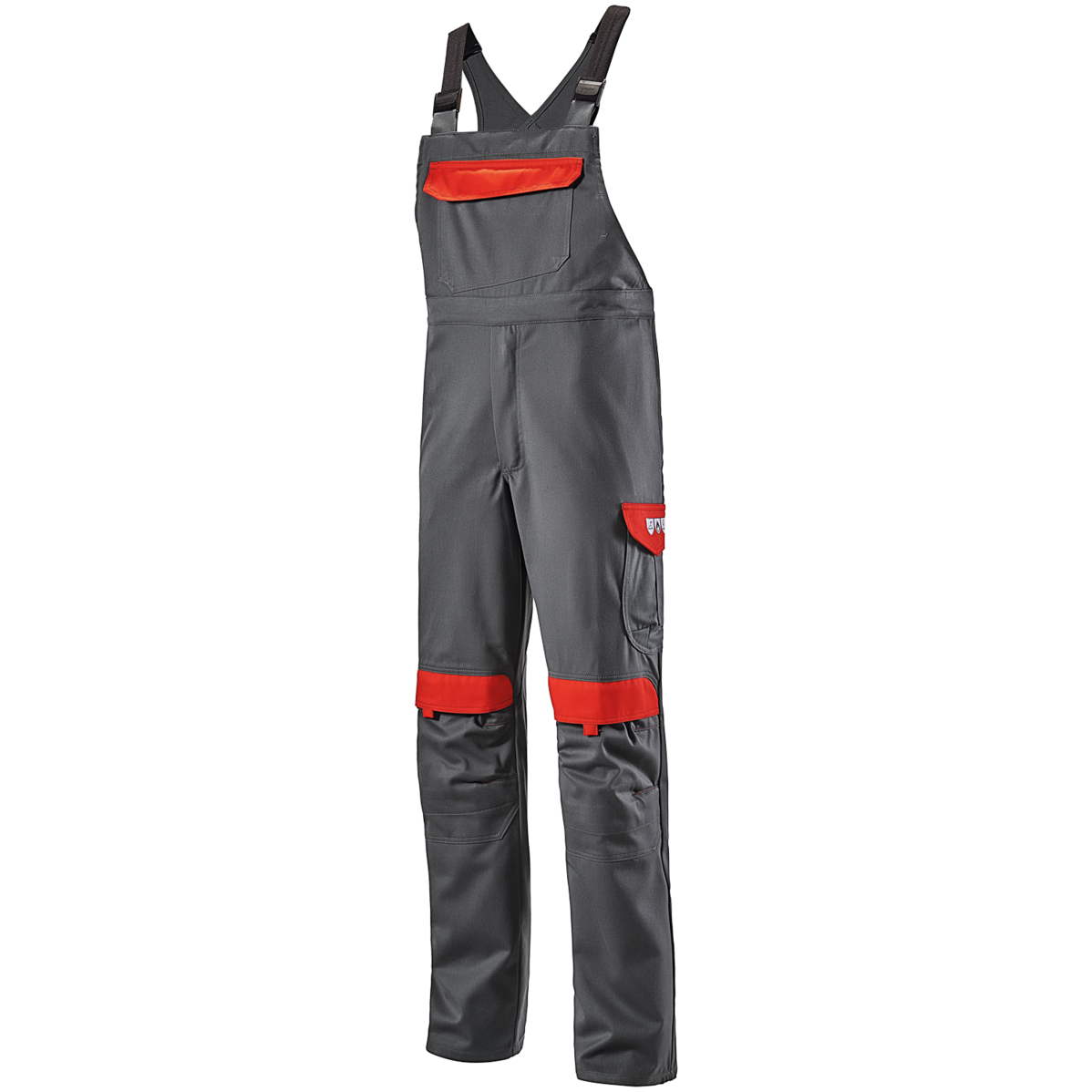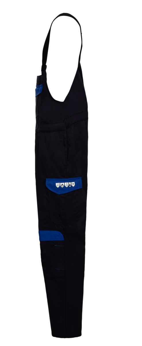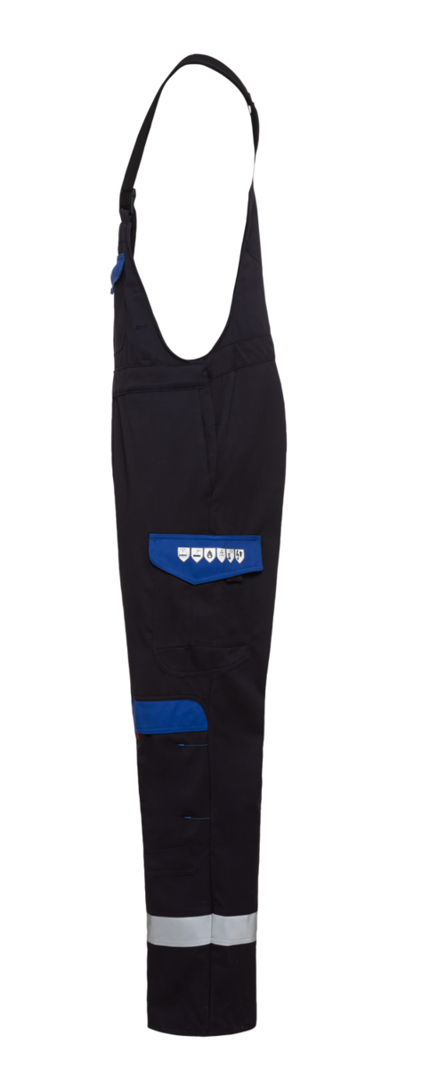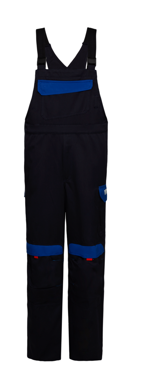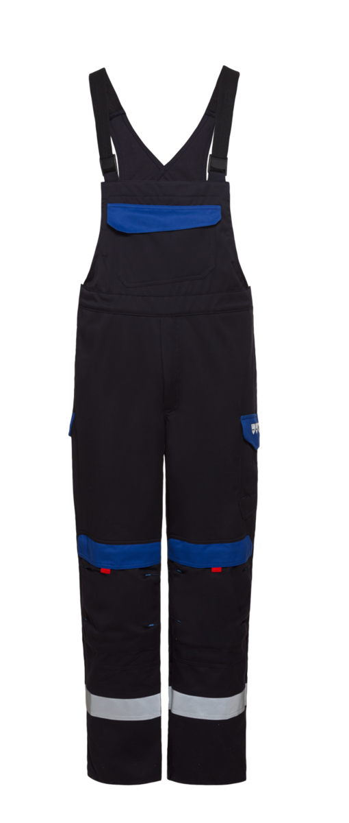Un autre des points forts de la salopette sont ses nombreuses options de rangement. Le modèle dispose d'un total de sept poches, dont une poche bavette, une règle pliante et une poche sur la jambe. Nombre d'entre elles sont dotées de rabats et de boutons-pression et sont donc conformes aux exigences strictes de la norme. La largeur des hanches peut être ajustée pour un ajustement parfait et ajusté à la silhouette. Les bretelles peuvent également être ajustées de manière flexible. Le pantalon est disponible en option dans des tons de bleu ou une combinaison de gris et de rouge.