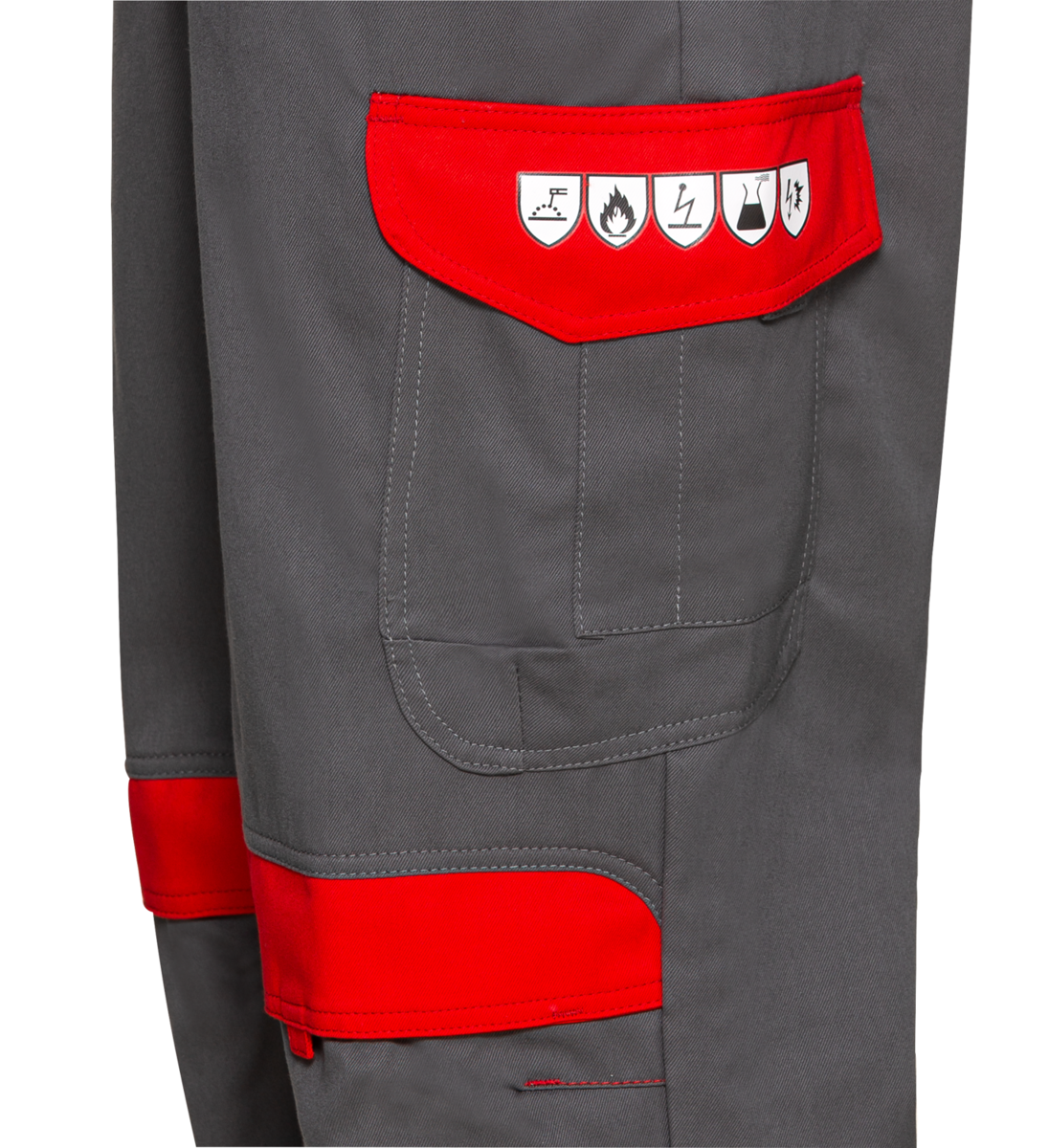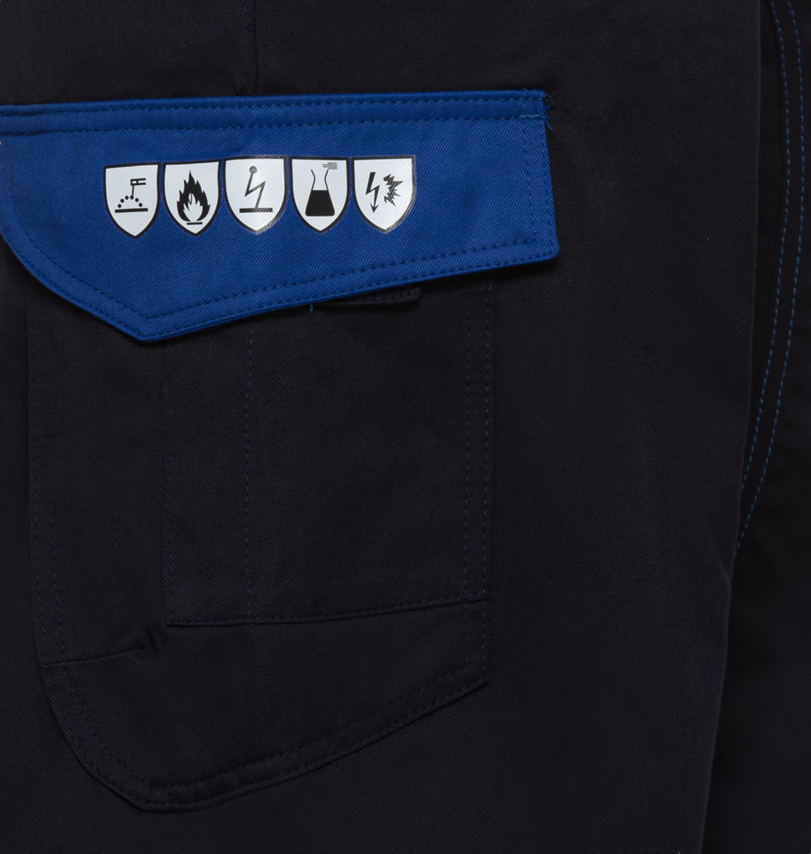 - Des poches genouillères ergonomiques, des pictogrammes standards sur le rabat de la poche de jambe