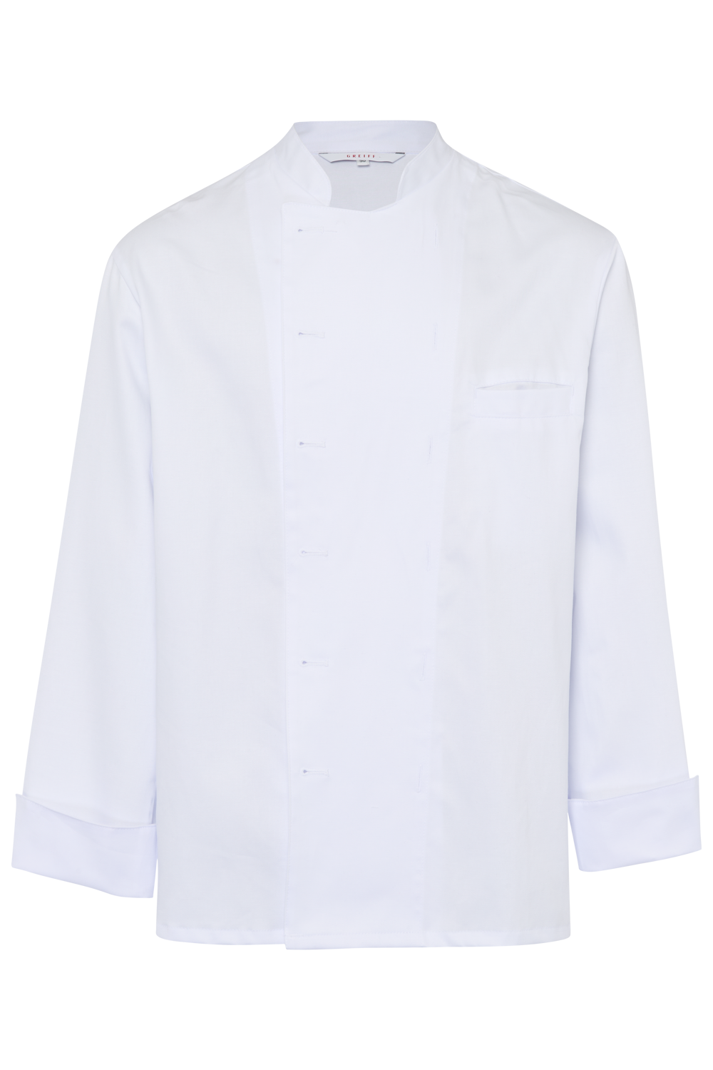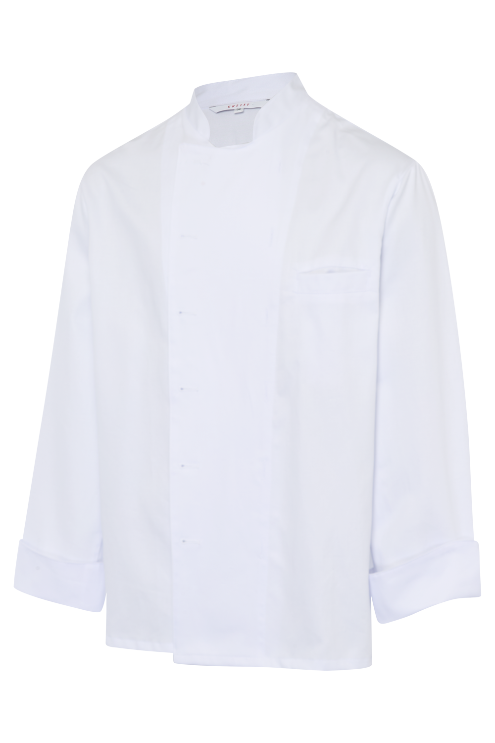 Visoka kvaliteta , ravno krojena kuharska jakna za muškarce u klasičnoj bijeloj boji. Svijetlosive površine na rukavima i podignutom ovratniku sprječavaju prerano prljanje.