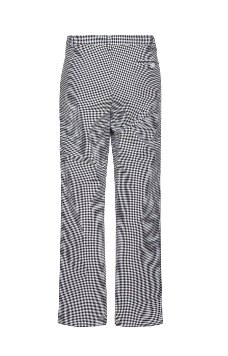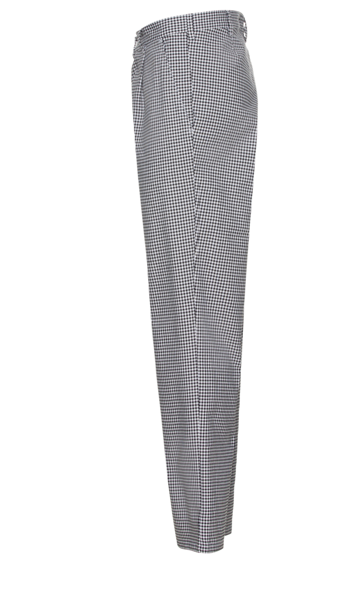 - Klasično, crno-bijelo Karirane kuharske hlače s naborima