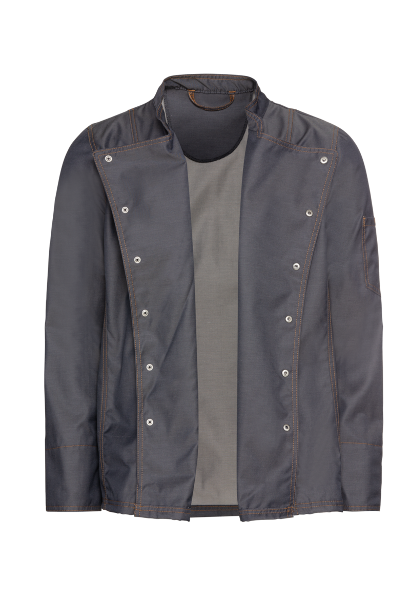 Trendi farmer szakácskabát a fiatal, kreatív szakácsoknak, praktikus részletekkel és bőrbarát, könnyen ápolható anyaggal.