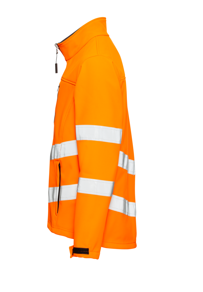 The jacket is made from robust ripstop fabric with stretch components, making it particularly comfortable to wear, plus it feels much looser than other softshell jackets. The reflective stripes on all sides, which draw attention to the wearer, especially in the dark , are applied as patches for even greater wearing comfort. CWS has used dark fabric on the inside of the turn-down stand-up collar including chin protection so that dirt isn’t as obvious. Other details include the zip front, adjustable cuffs and soft, warming fleece inside. A bungee cord also makes it possible to adjust the bottom of the jacket as desired. Two side pockets and a breast pocket offer plenty of space for storing tools and other aids. The side zip makes the breast pocket particularly practical and convenient.