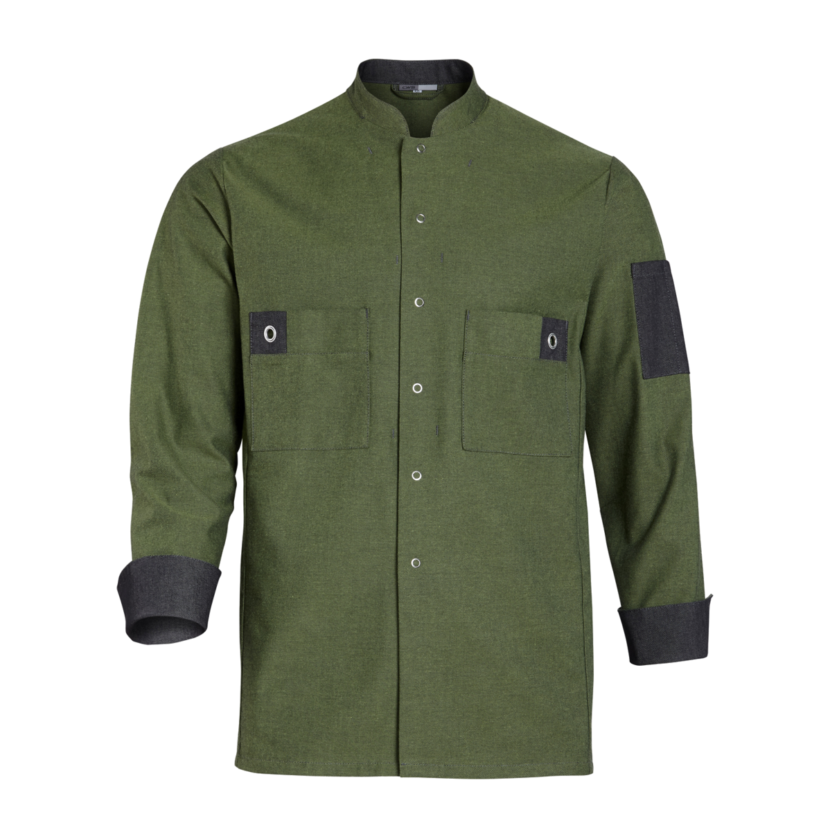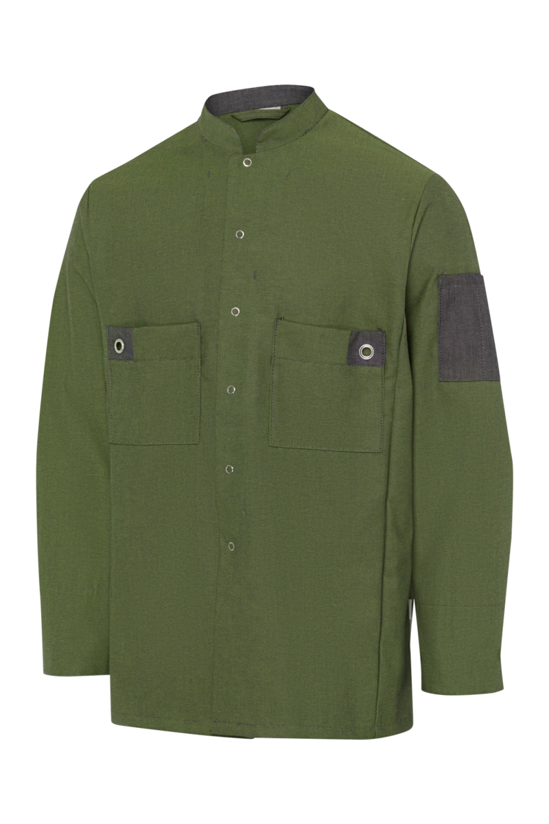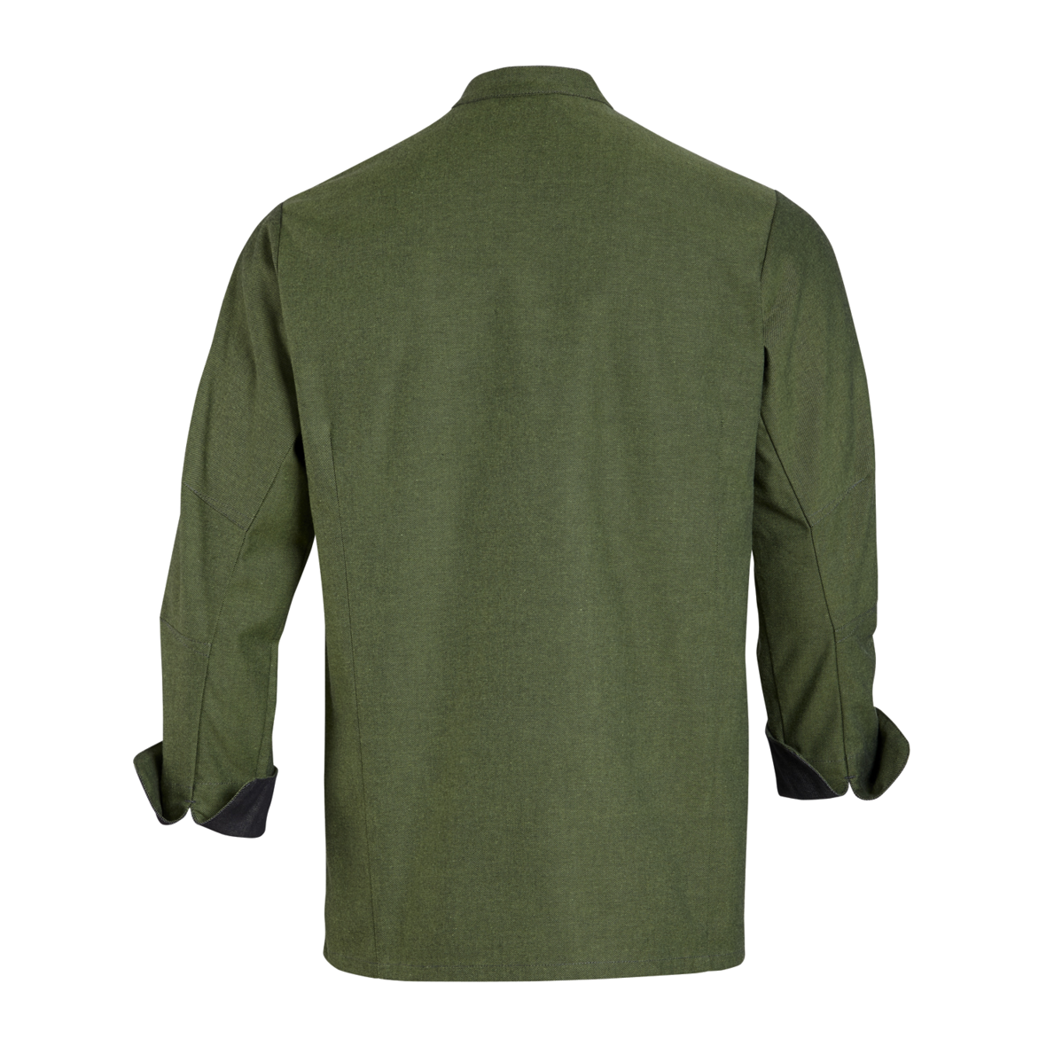 Ecological and "Made in Europe": The fashionable "Scandic Line" bistro jacket for men not only looks good, it is also good. Good for the environment and good for daily use at work. The environmentally friendly fabric made from recycled polyester and recycled cotton is pleasantly light and cool on the skin. Functional details further support the wearing comfort. For example, the sleeves of this counter jacket are ergonomically shaped and support freedom of movement. Ventilation openings are incorporated under the arms to ensure better air circulation, especially in hot and humid kitchens. The neck area and the arm cuffs have been worked in a slightly contrasting anthracite to prevent premature soiling. This chef's jacket for men is durable and scores with a high colour and shape retention, even with daily washing. The chef's jacket closes with press studs that allow the jacket to be removed quickly in an emergency. Two breast pockets hold work utensils. The bistro jacket from the "Scandic Line" collection is perfect for use in food retail, in supermarkets and organic markets, at their fresh food counters, in butchers and butcher shops, bakeries and confectioners as well as in fruit and vegetable sales. The clear collection also contributes to a modern appearance and a coherent overall impression in system gastronomy, catering, restaurants and canteens.