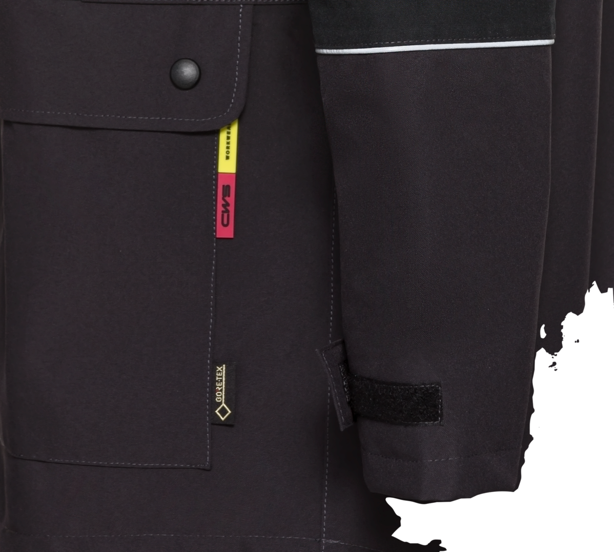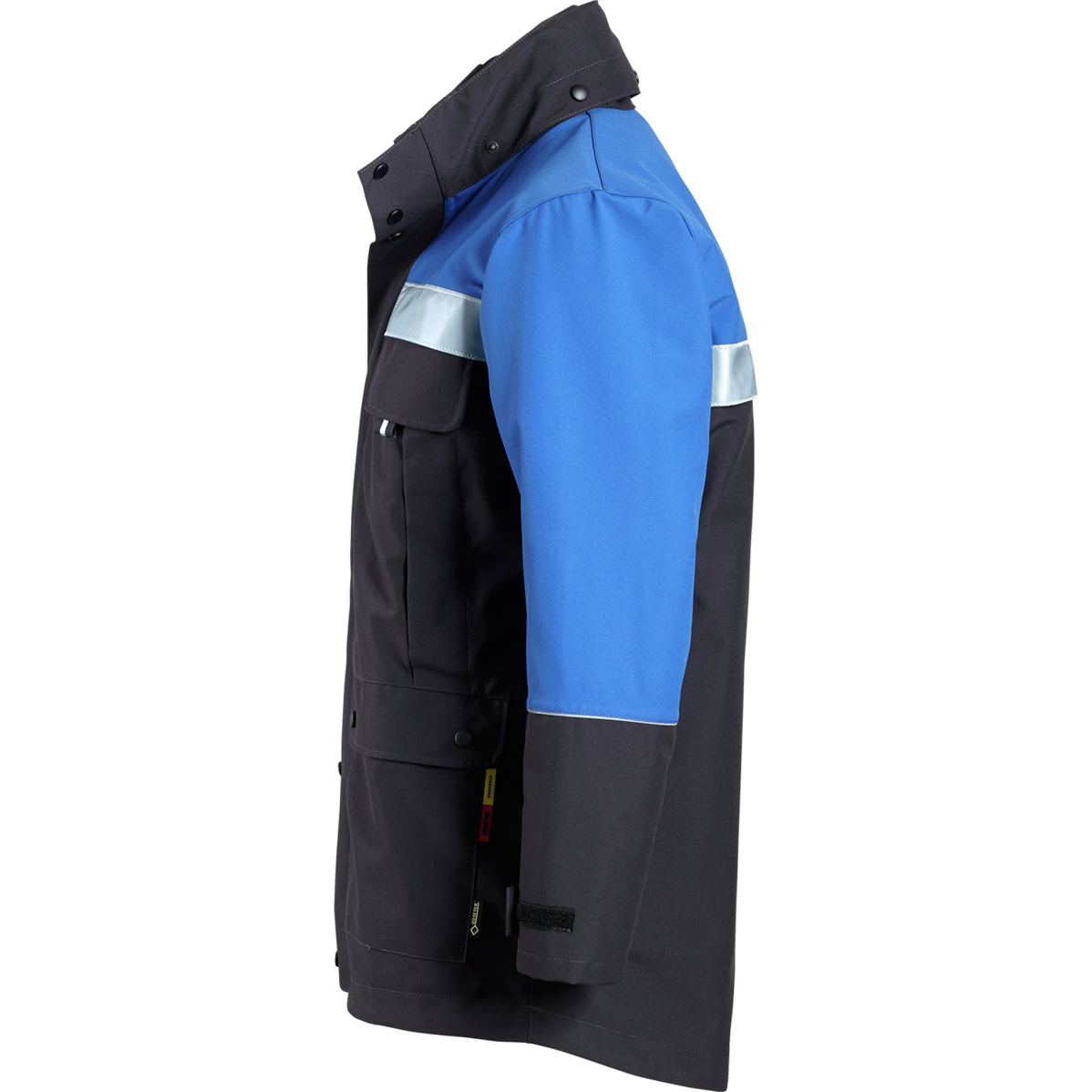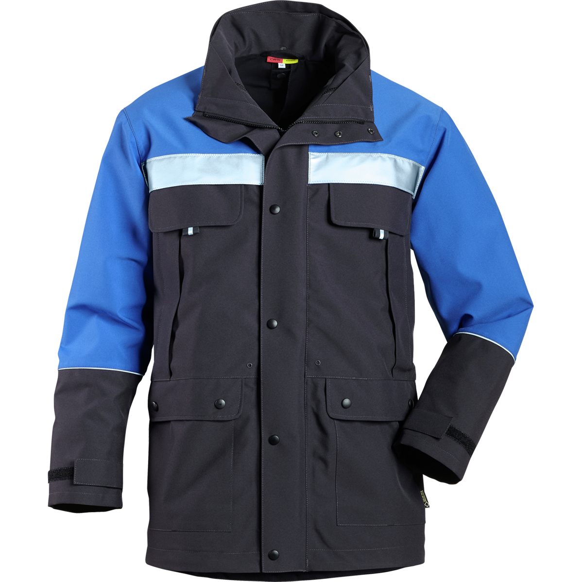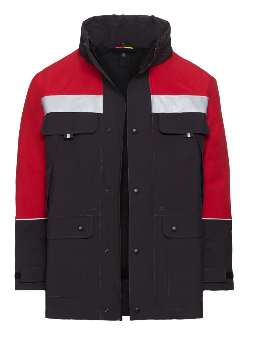 Do i wielu zalet parki GORE-TEX® należy zaliczyć kilka kieszeni na przybory. Są to dwie kieszenie na piersi zapinane na zamek błyskawiczny, dwie naszywane kieszenie boczne z patkami i zatrzaskami oraz kieszeń wewnętrzna zapinana na rzep. Elementy odblaskowe zwiększają widoczność pracownika.