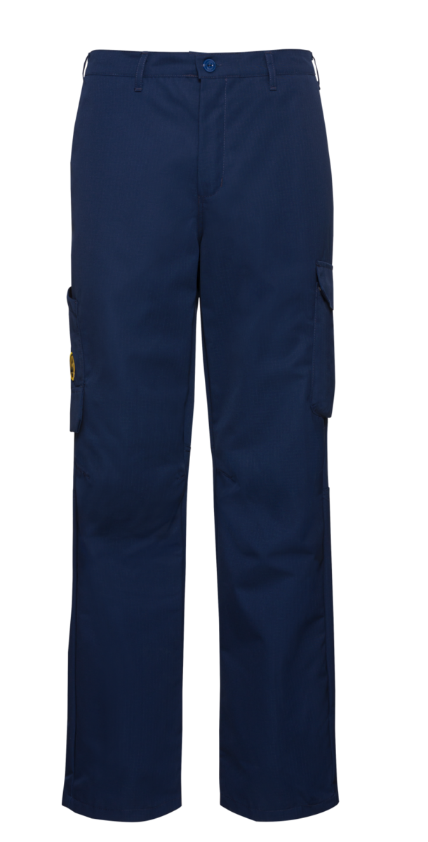 Acești pantaloni de lucru din "ESD Safe Line" se potrivesc perfect cu hainele de lucru din colecție. Țesătura lor de twill este realizată dintr-o combinație de 66,5 % poliester, 32 % bumbac și 1,5 % fibre de carbon. La fel ca și halatele și cămășile din colecție, pantalonii cu talie împiedică descărcarea electrostatică (descărcarea de electricitate statică) pe componentele electronice sensibile. De asemenea, sunt foarte confortabili pe piele și punctează pentru croiala plăcută și păstrarea excelentă a culorilor. Clienții pot alege între culorile gri deschis, albastru închis, albastru și negru, iar pantalonii de lucru care se potrivesc perfect cu silueta au o cravată frontală cu fermoar și buton ascuns, bucle pentru centură și un spate elastic, care permite ajustarea taliei la lățimea dorită. Două buzunare laterale, un buzunar la spate și unul la picior și un buzunar pentru riglă întărit cu o bază de buzunar liber oferă spațiu pentru ustensile.Cu produsele din "ESD Safe Line", angajații sunt echipați în mod ideal pentru a lucra cu componente electrice foarte sensibile. Electricitatea statică nu poate fi transferată la componentele electrice. CWS întreține și spală produsele ESD în mod profesionist. Experții instruiți verifică îmbrăcămintea de lucru pentru posibile deteriorări și o repară dacă este necesar.