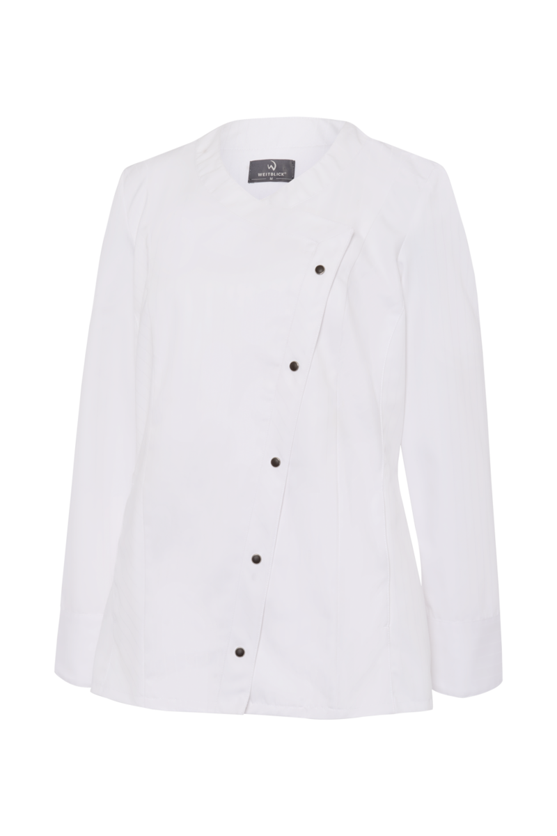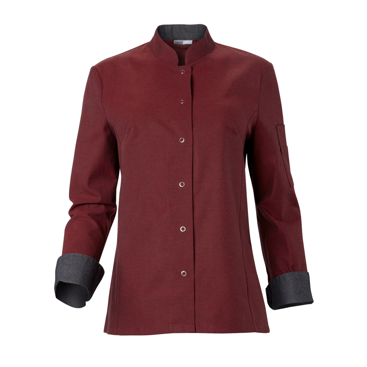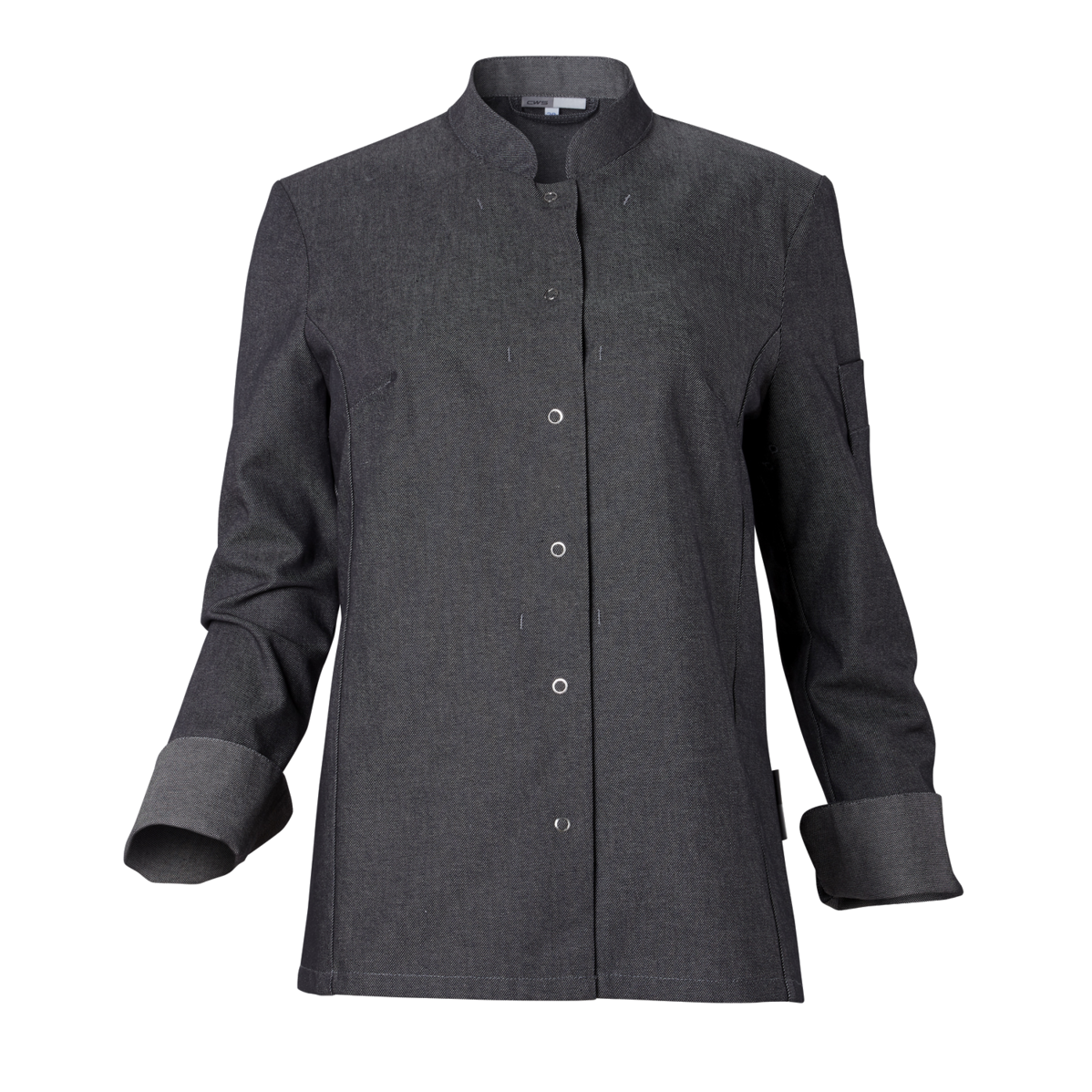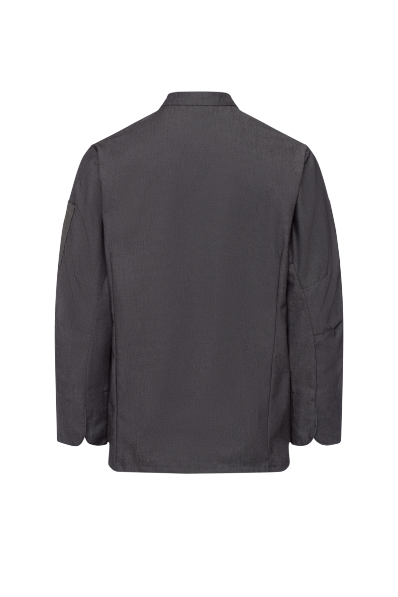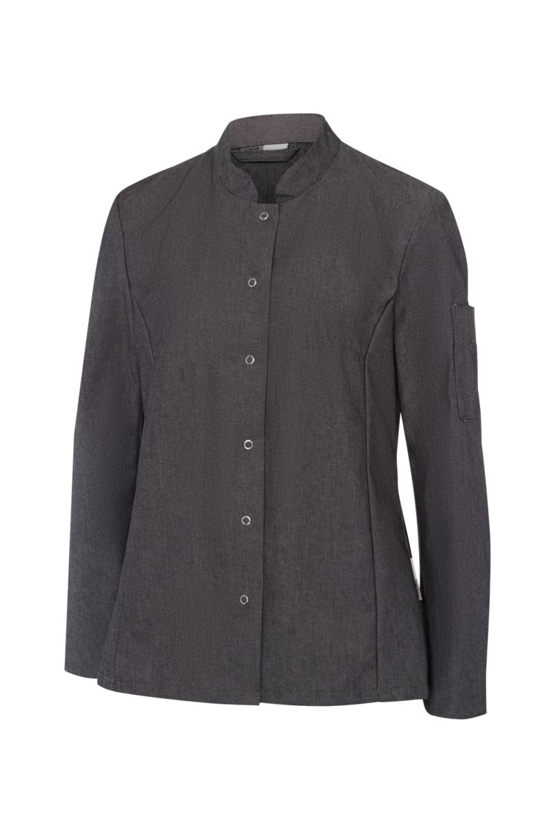 This high-quality chef's jacket from the "Scandic Line" collection by CWS is characterised by its environmentally friendly and resource-saving production. At the same time, practical details support the high wearing comfort and functionality in the hectic everyday kitchen life. The blended fabric made from recycled cotton and recycled polyester is pleasantly light and cool on the skin. The ergonomically shaped sleeves offer optimal freedom of movement; ventilation openings under the arms provide refreshing air circulation in hot and humid kitchens. Parts that are particularly susceptible to dirt, such as the neck area or the arm cuffs, have been finished in a slightly contrasting anthracite. Thanks to the polyester content, this chef's jacket for women is characterised by high colour and shape retention. Due to the high elasticity, the garment creases very little. Both are important arguments for workwear that needs to be changed and cleaned daily. This women's bistro jacket is perfect for all those who attach great importance to pleasant wearing comfort, many well thought-out functions and the use of sustainable materials at work. The chef's jacket closes with press studs that allow the jacket to be taken off quickly in an emergency.