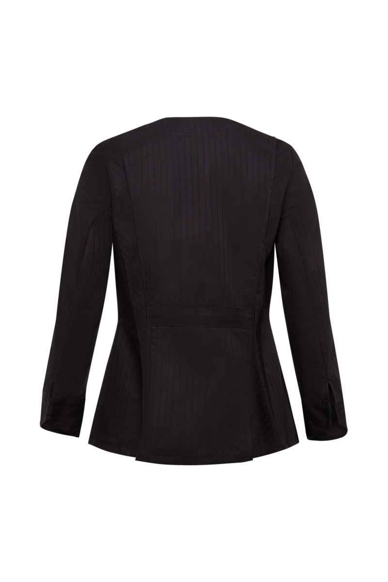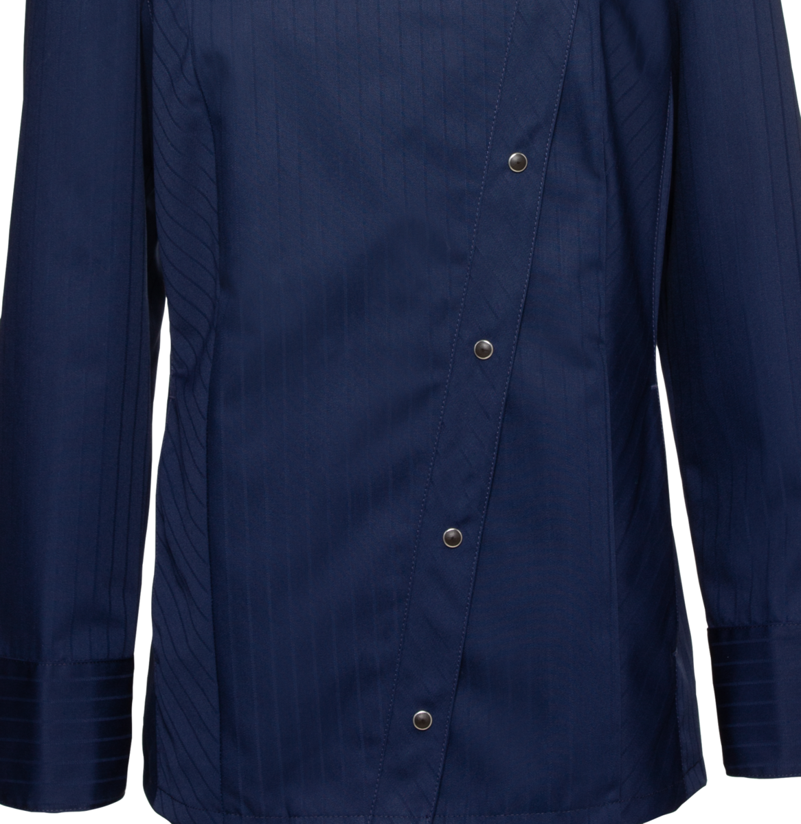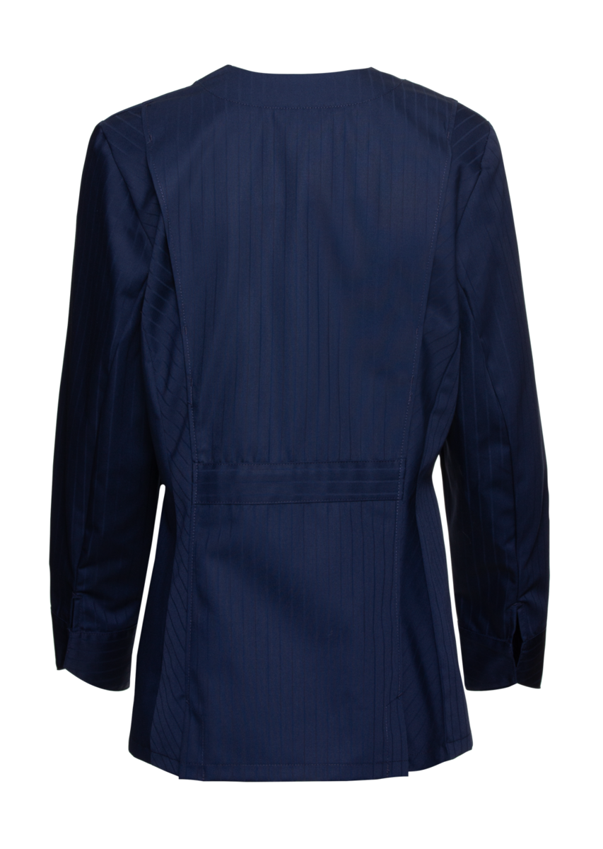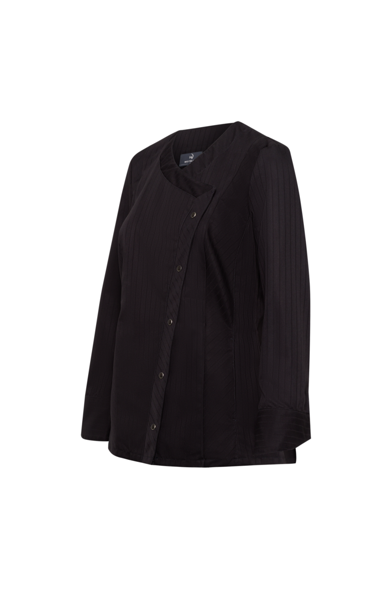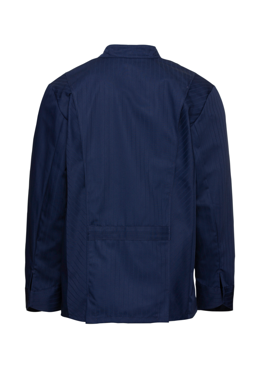 This high-quality chef's jacket from the "Scandic Line" collection by CWS is characterised by its environmentally friendly and resource-saving production. At the same time, practical details support the high wearing comfort and functionality in the hectic everyday kitchen life. The blended fabric made from recycled cotton and recycled polyester is pleasantly light and cool on the skin. The ergonomically shaped sleeves offer optimal freedom of movement; ventilation openings under the arms provide refreshing air circulation in hot and humid kitchens. Parts that are particularly susceptible to dirt, such as the neck area or the arm cuffs, have been finished in a slightly contrasting anthracite. Thanks to the polyester content, this chef's jacket for women is characterised by high colour and shape retention. Due to the high elasticity, the garment creases very little. Both are important arguments for workwear that needs to be changed and cleaned daily. This women's bistro jacket is perfect for all those who attach great importance to pleasant wearing comfort, many well thought-out functions and the use of sustainable materials at work. The chef's jacket closes with press studs that allow the jacket to be taken off quickly in an emergency.