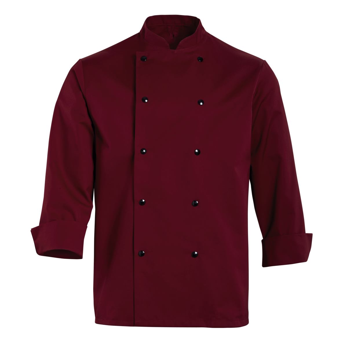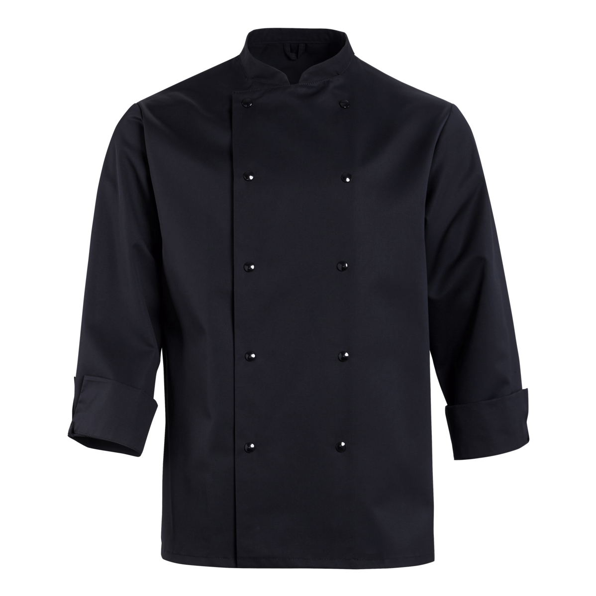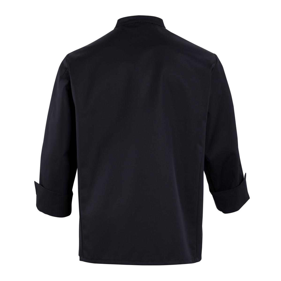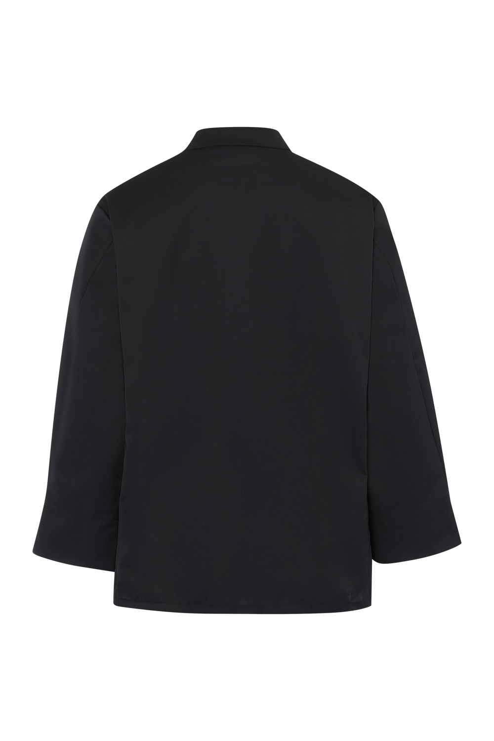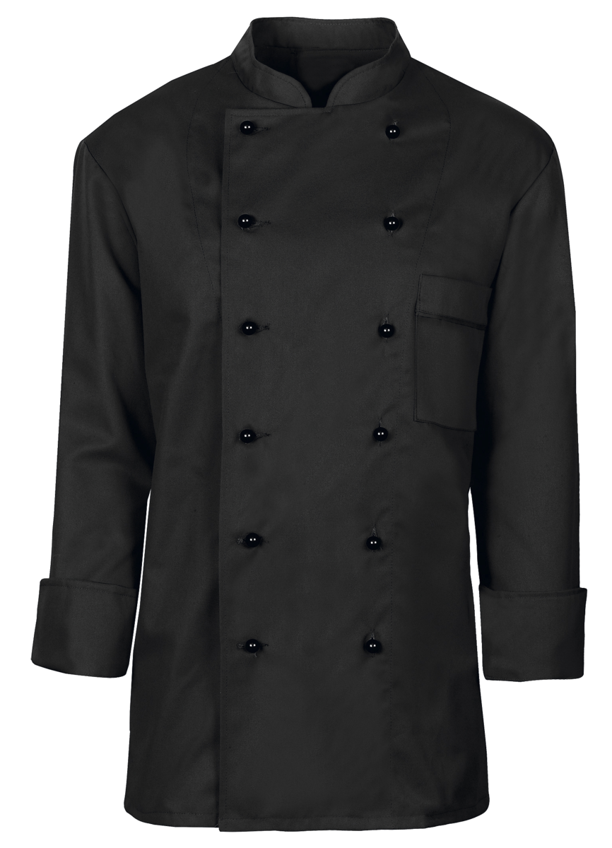 The chef's jacket has a high neck, double-breasted buttons and a discreet stand-up collar. It is closed with a double-breasted button placket. Air-conditioning eyelets under the sleeves improve air circulation. The cuffs have a slit. The chef's jacket has a small breast welt pocket.