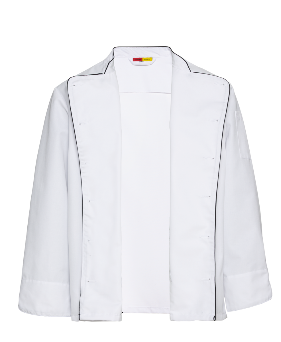 Individual cookery requires individual, unconventional workwear: This chef's jacket from the "Paris Line" collection is classically crafted; however, the fine black piping defies the stiff conventions of overly uniform workwear and ensures a modern look.