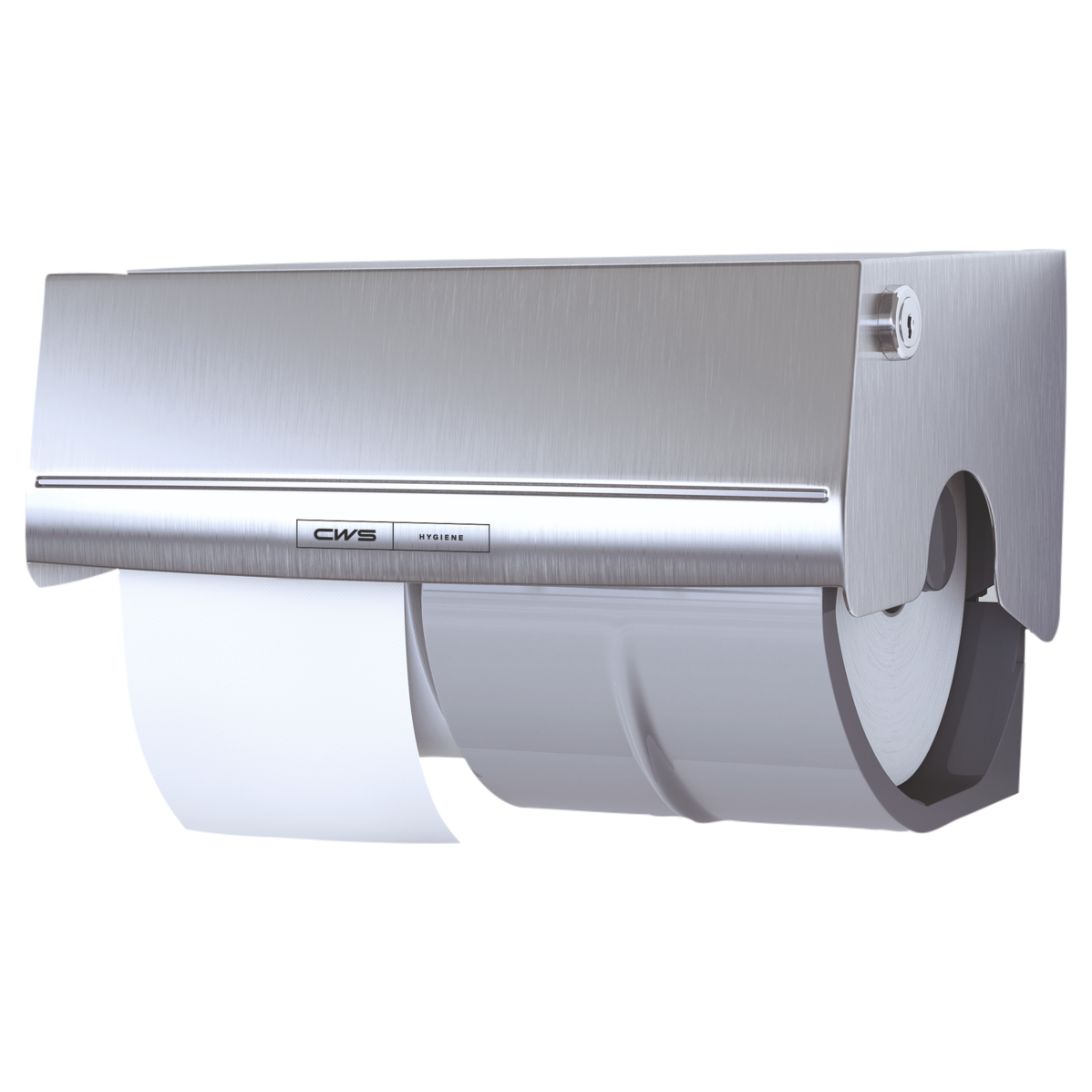Toaletni papir iz nerjavnega jekla je posebej primeren za umivalnice s srednjo pogostostjo uporabe. Držalo za toaletni papir ima prostor za dva zvitka. To zagotavlja, da je v dozirniku vedno dovolj papirja. Rezervno rolico lahko uporabite šele po končani prvi rolici, da preprečite izgubo toaletnega papirja. To zagotavlja tudi vgrajena zavora za rolo, ki preprečuje neskončno odvijanje papirja. Ključavnica preprečuje krajo polnilnega materiala.